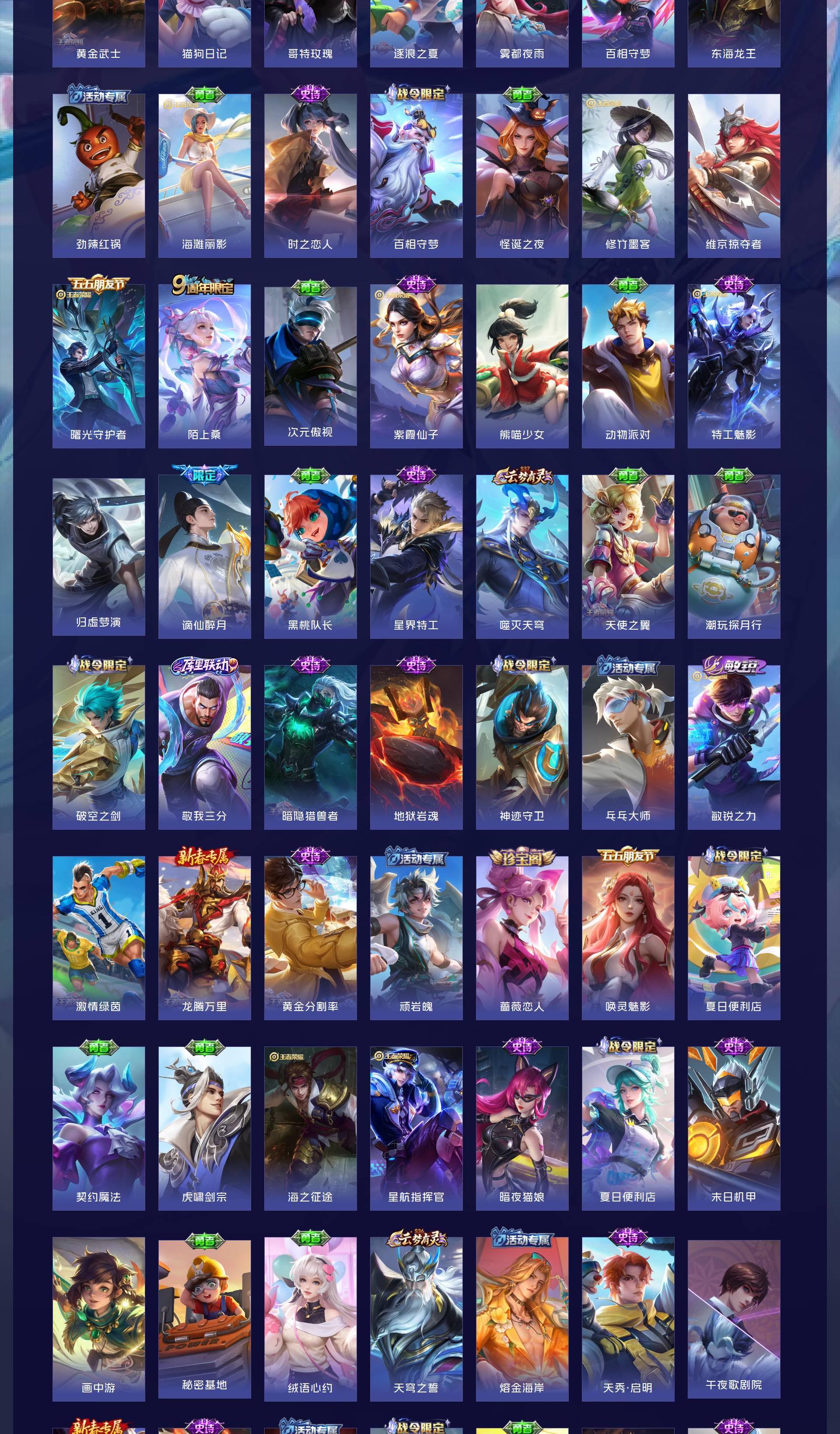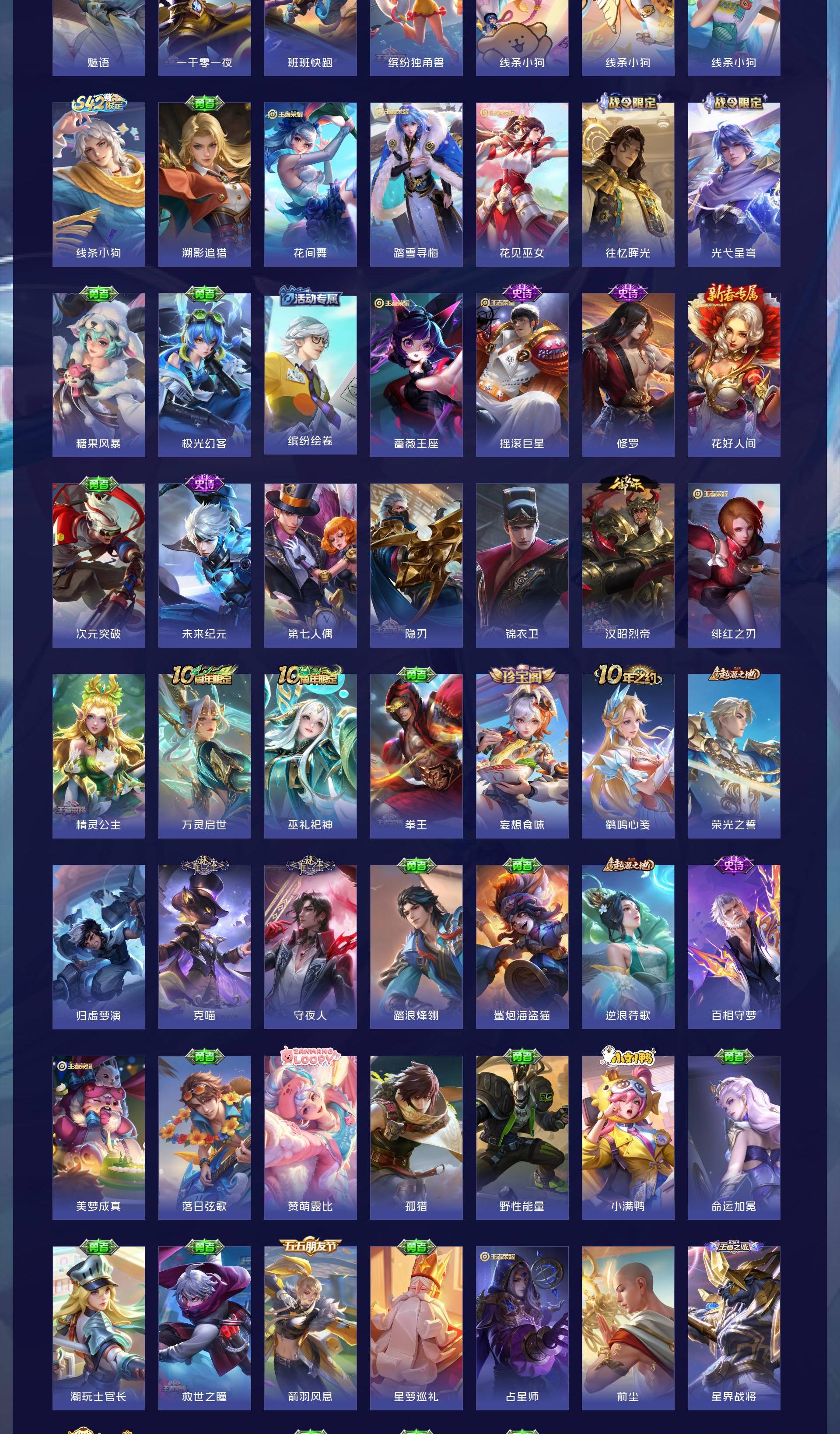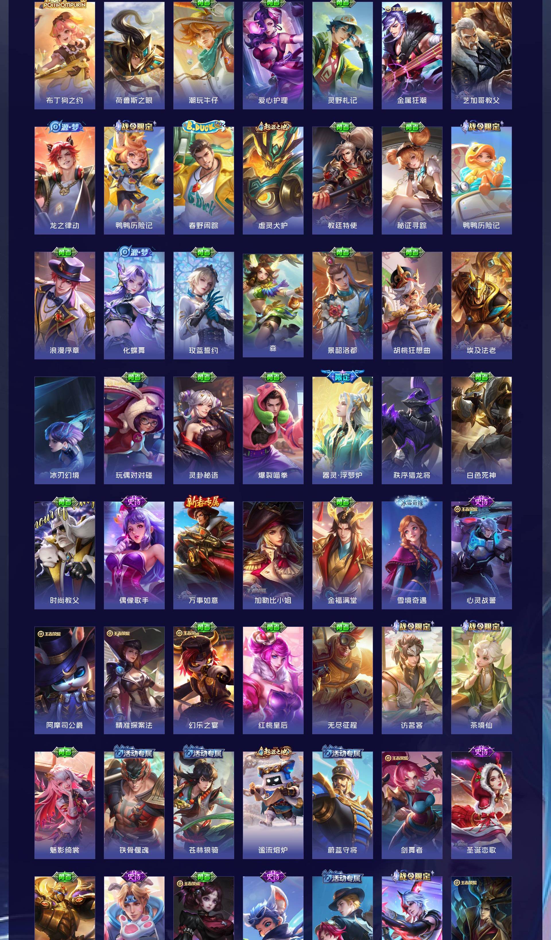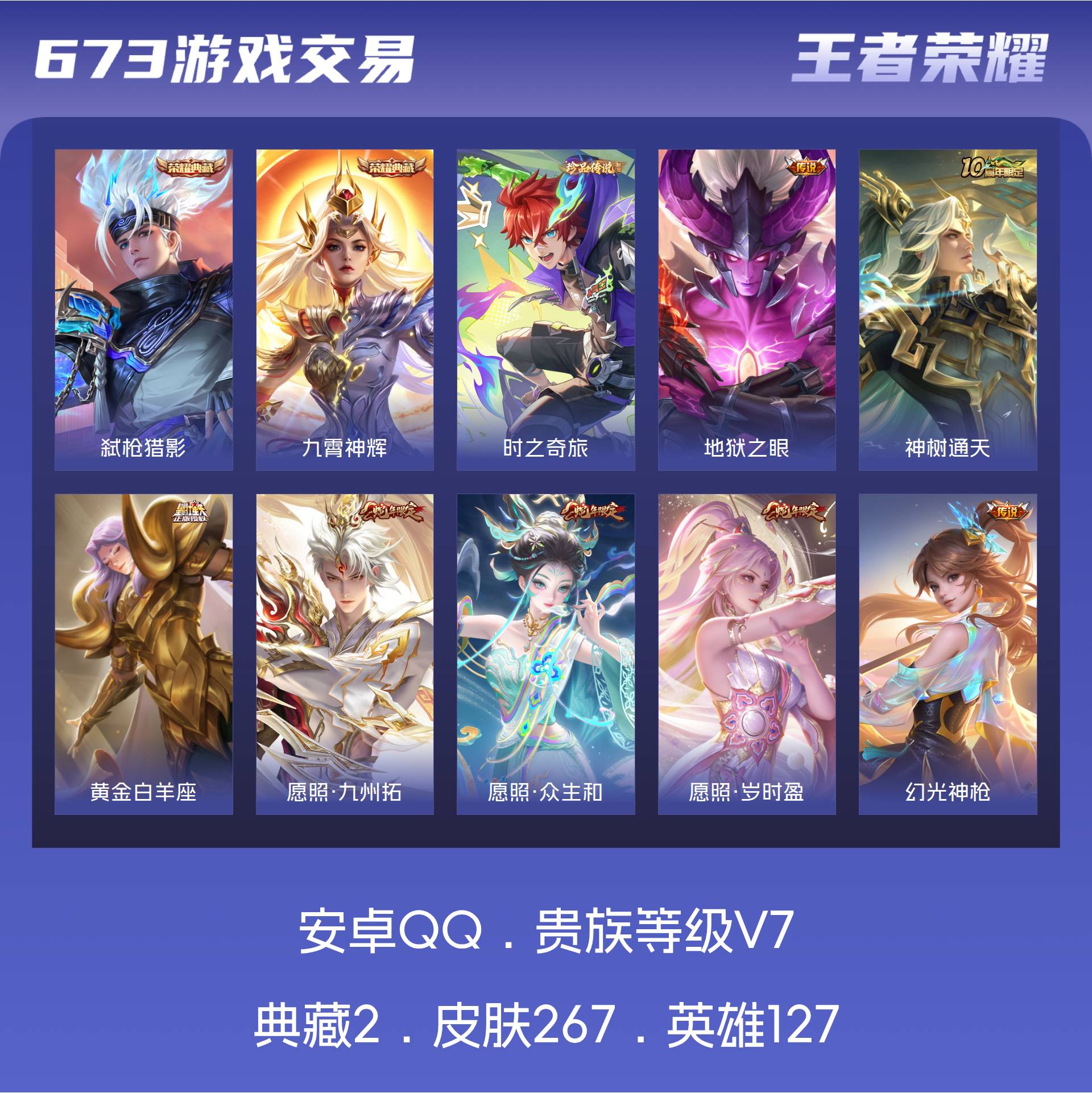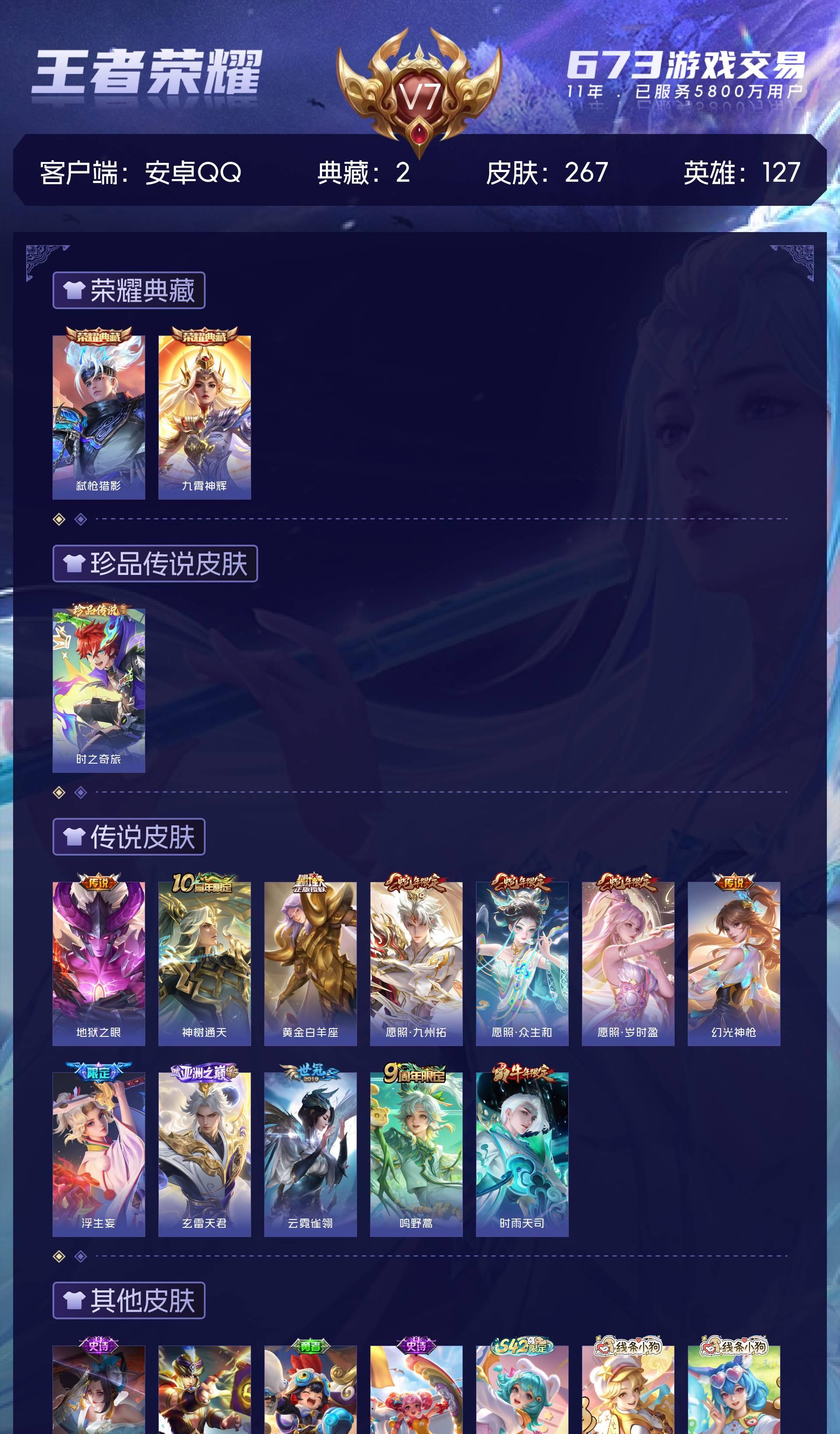 V7 皮肤267 英雄127 至尊星耀 荣耀典藏2 珍品传说1 传说12 其他皮肤255