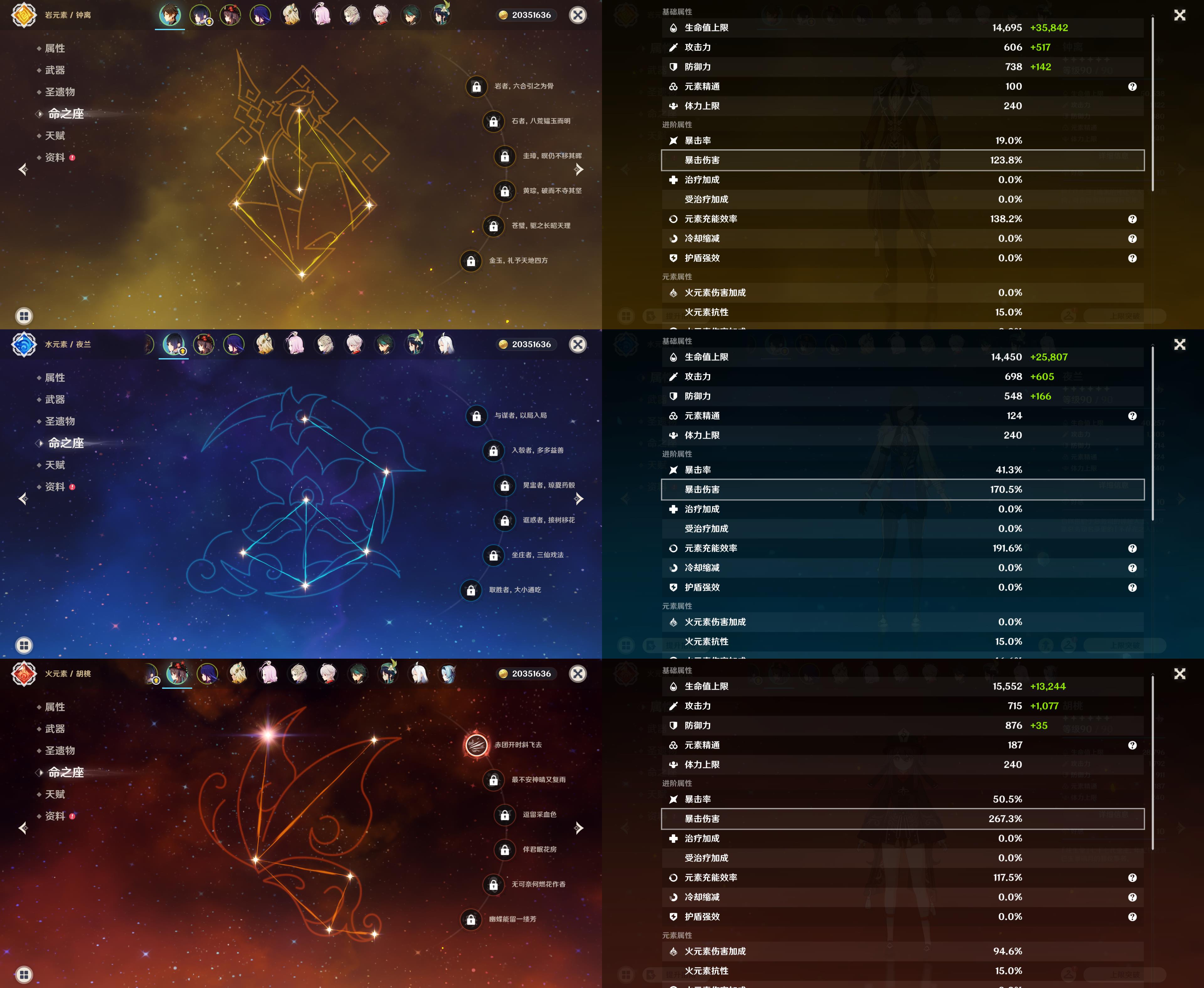 60级/68黄/女主/30个五星角色/15个五星武器/钟离/夜兰/