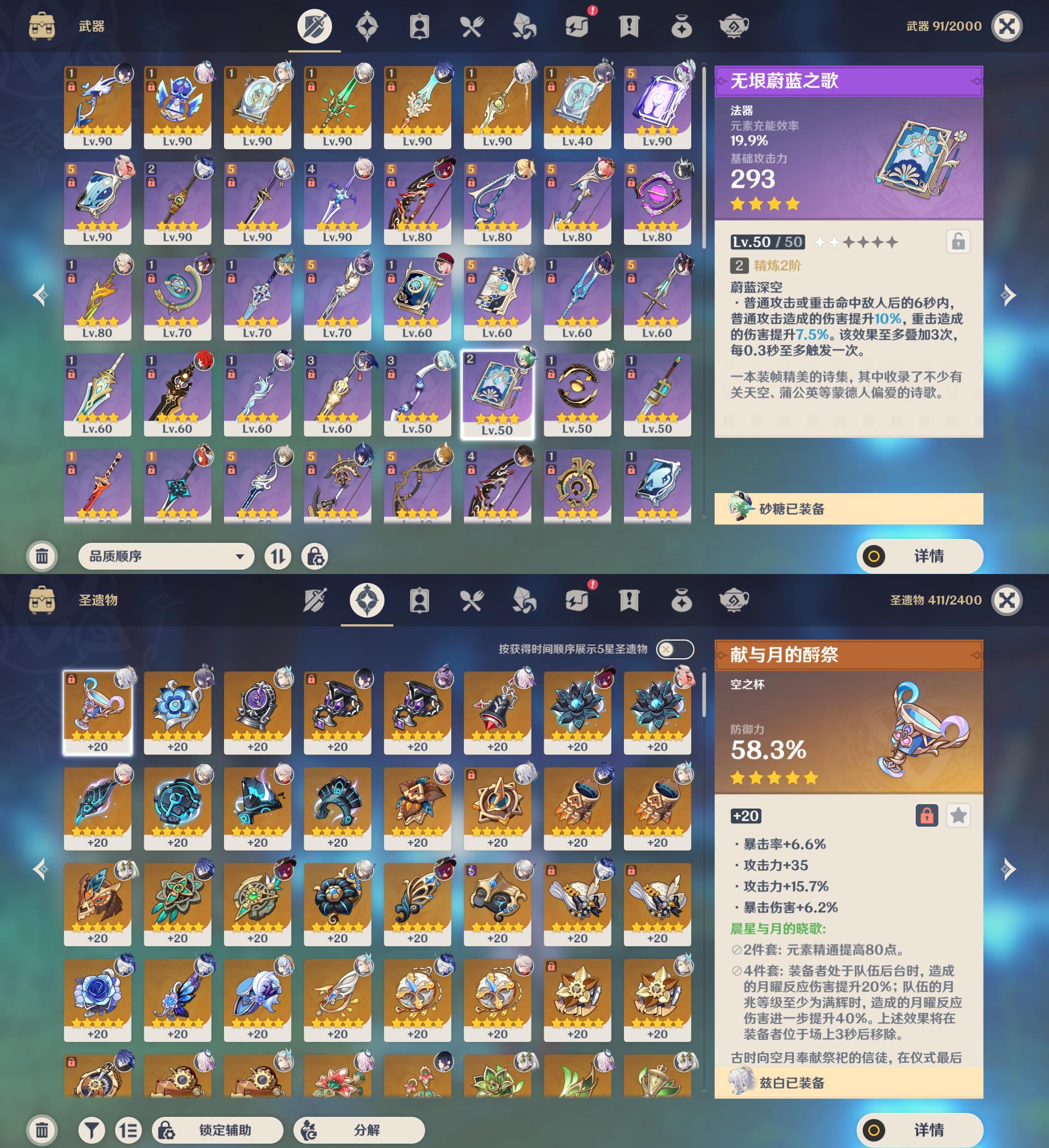 【YSN2437】59级/33黄/女主/22个五星角色/7个五星武器/阿蕾奇诺/1命夜兰/芙宁娜/枫原万叶/七七/神里绫华/0命兹白/恰斯卡/茜特菈莉/纳西妲/那维莱特/妮露/0命杜林/0命菲林斯/0命菈乌玛/莫娜/梦见月瑞希/琴/刻晴/1命提纳里/2命迪希雅/迪卢克/若水/祭星者之望/四风原典/和璞鸢/天空之脊/精1朏魄含光