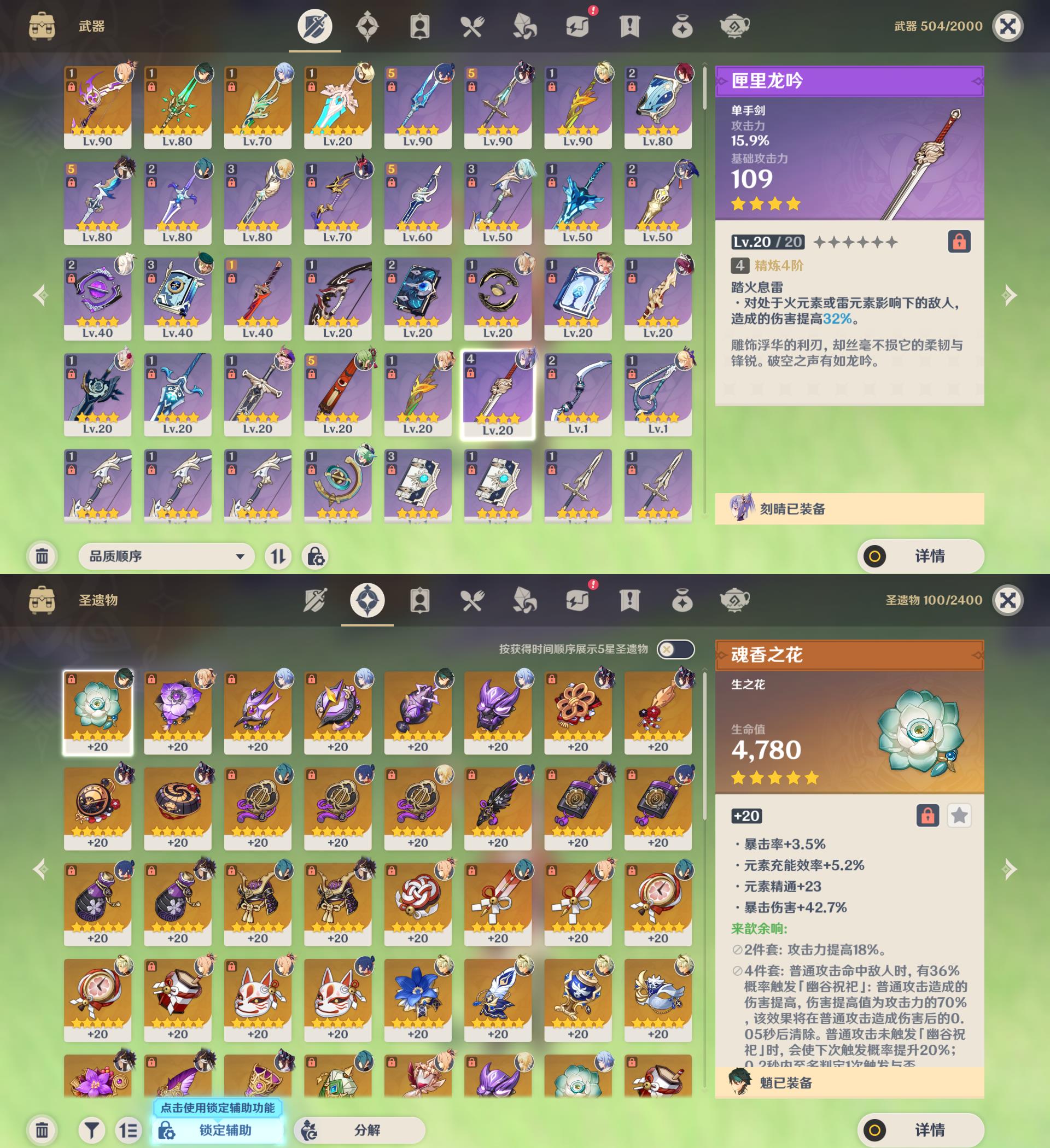 55级/15黄/女主/10个五星角色/4个五星武器/宵宫/赛诺/魈/琴/1命莫娜/
