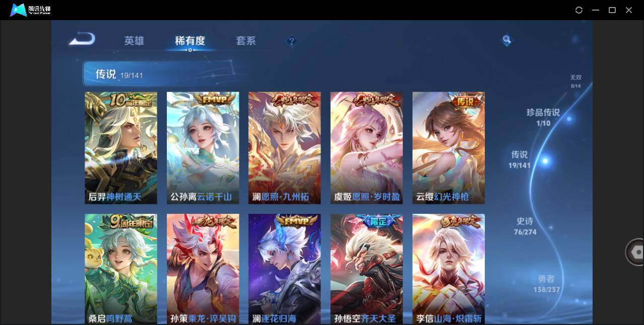 无二次-贵7-128英雄-302皮肤-1典藏-1珍品传说-19传说-2传说播报-1星元-15按键