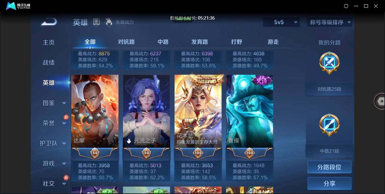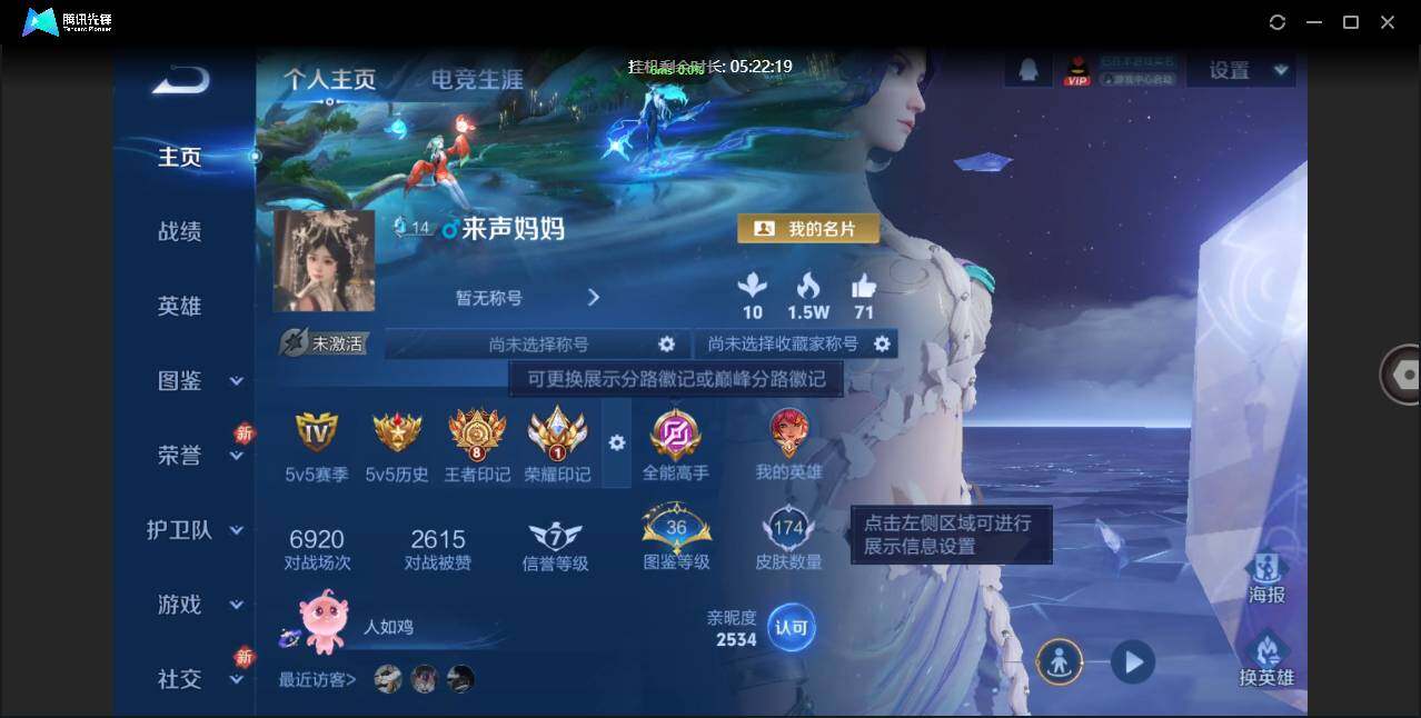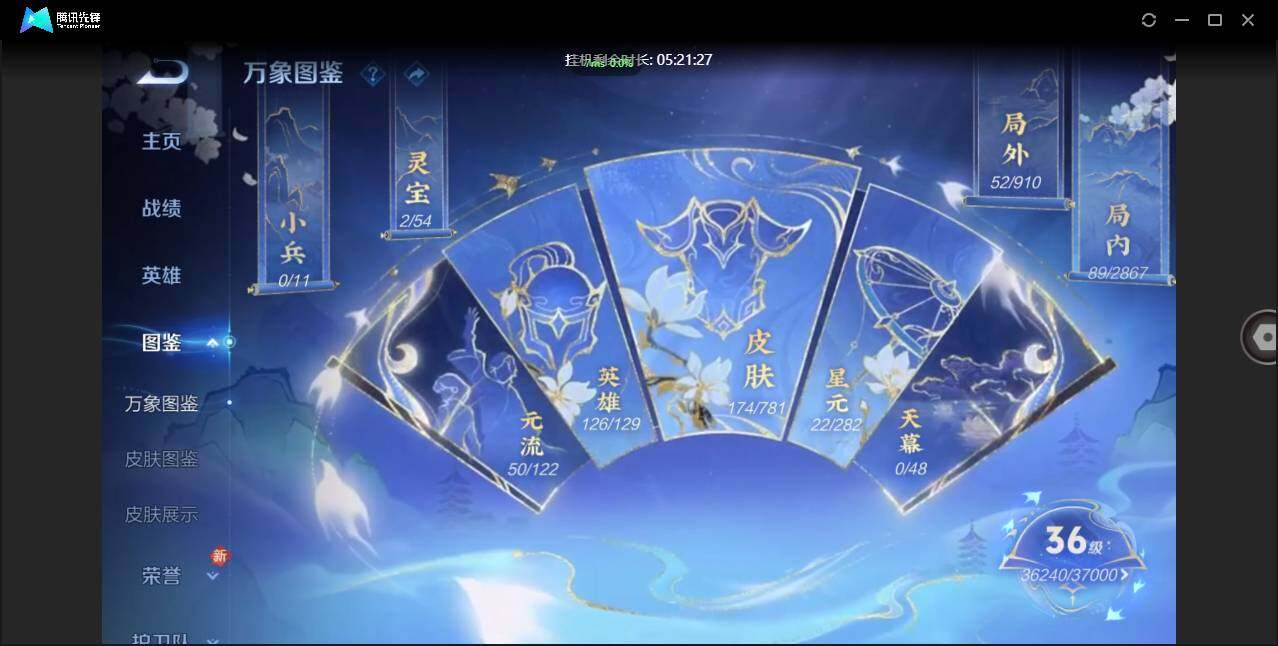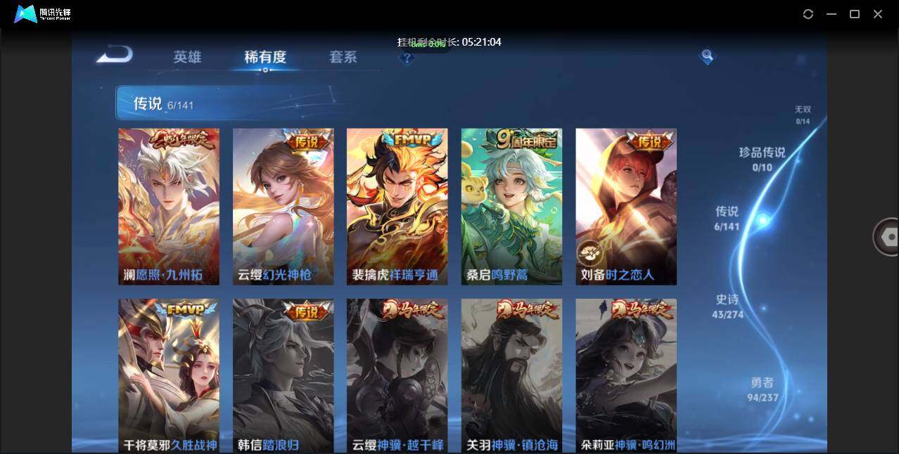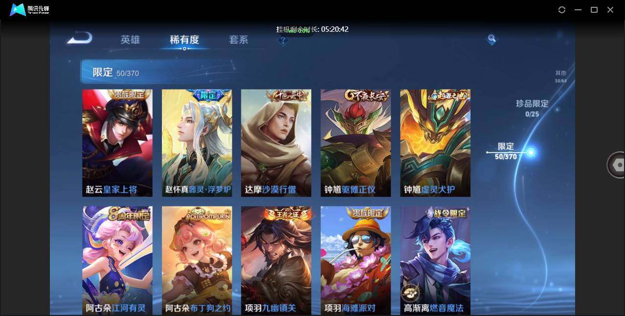 不可二次-贵5-126英雄-174皮肤-1典藏-6传说-50限定-2按键-贵族积分8543