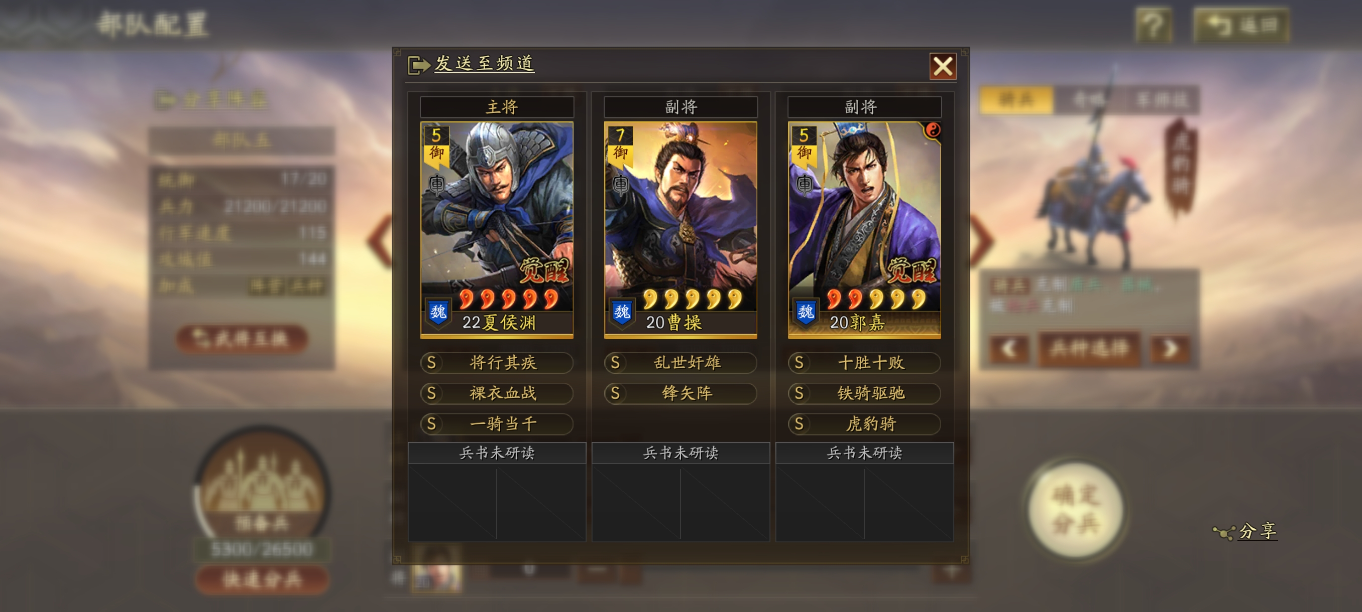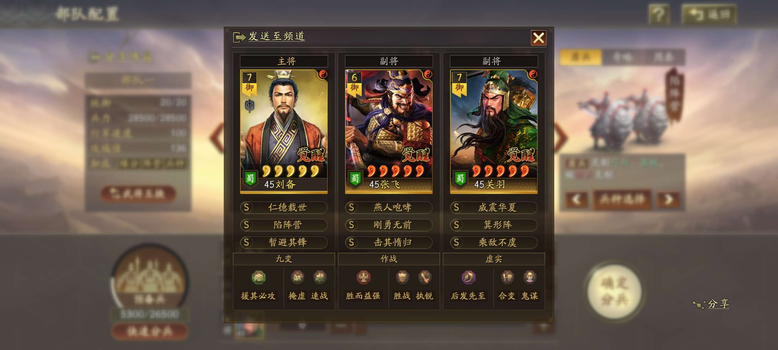 满配桃园,T0龙虎枪,渊骑,满红吴弓,富贵骑。阵容多多,接受议价