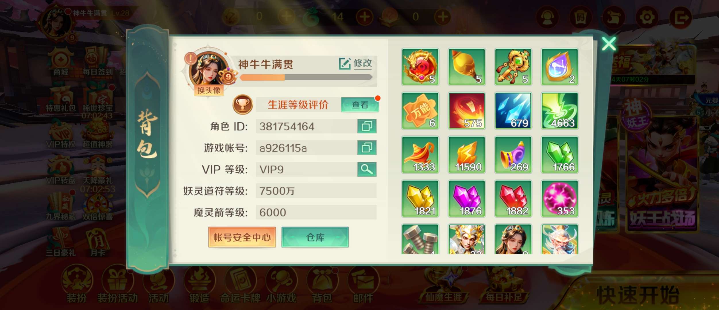 主炮7500,副炮6000,妖灵魔灵都能玩