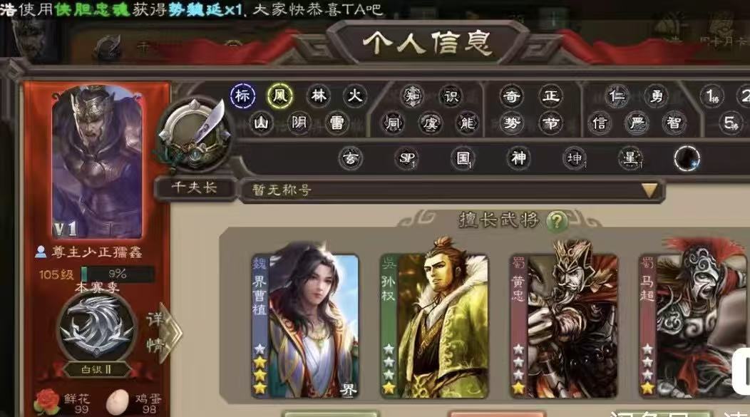 千夫长70宝珠(可换火龙果势魏延)4万羽毛5300将魂