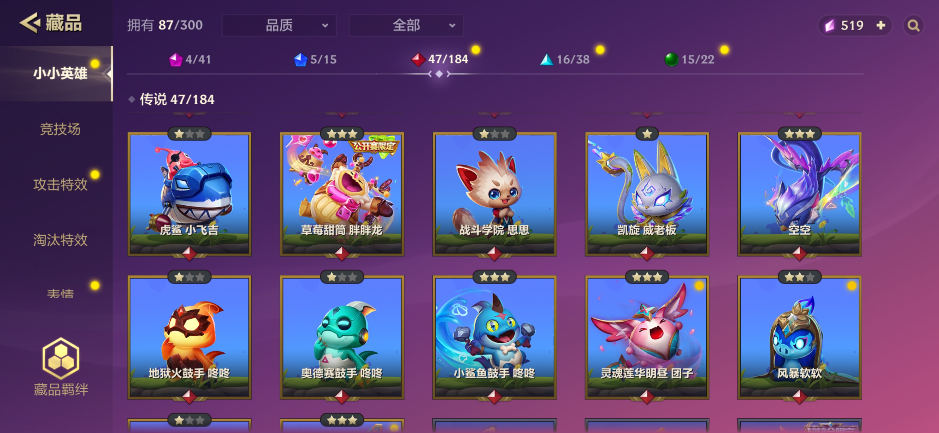 【编号34762】【店长推荐捡漏号】【4神话5小小英雄1英雄竞技场】K/DA ALL OUr小小伊芙琳、神龙尊者 小小李青、玉剑传说 艾瑞莉娅、心之钢 小小永恩、胜利之剑小小亚索、小小永恩、小小卡莎、小小泰隆、小小杰斯、冰霜小小峡谷先锋、凯旋 咚咚、新春使者 胖胖龙、金鳞龙 鳞珑、吞星者 静尾、凯旋 小飞吉、极冰 石像仔、破败军团 婉婉、泳池派对 团子、小小峡谷先锋、黑客 夜月兔、凯旋 威老板、炽焰使者 仓鼠商人、战斗学院 思思、空空、地狱火鼓手 咚咚、奥德赛鼓手 咚咚、小鲨鱼鼓手 咚咚、祥瑞白