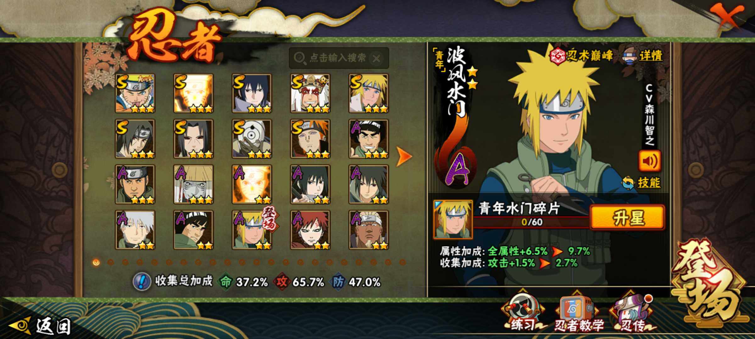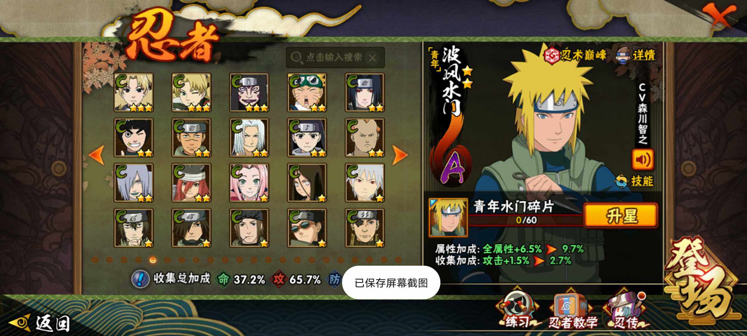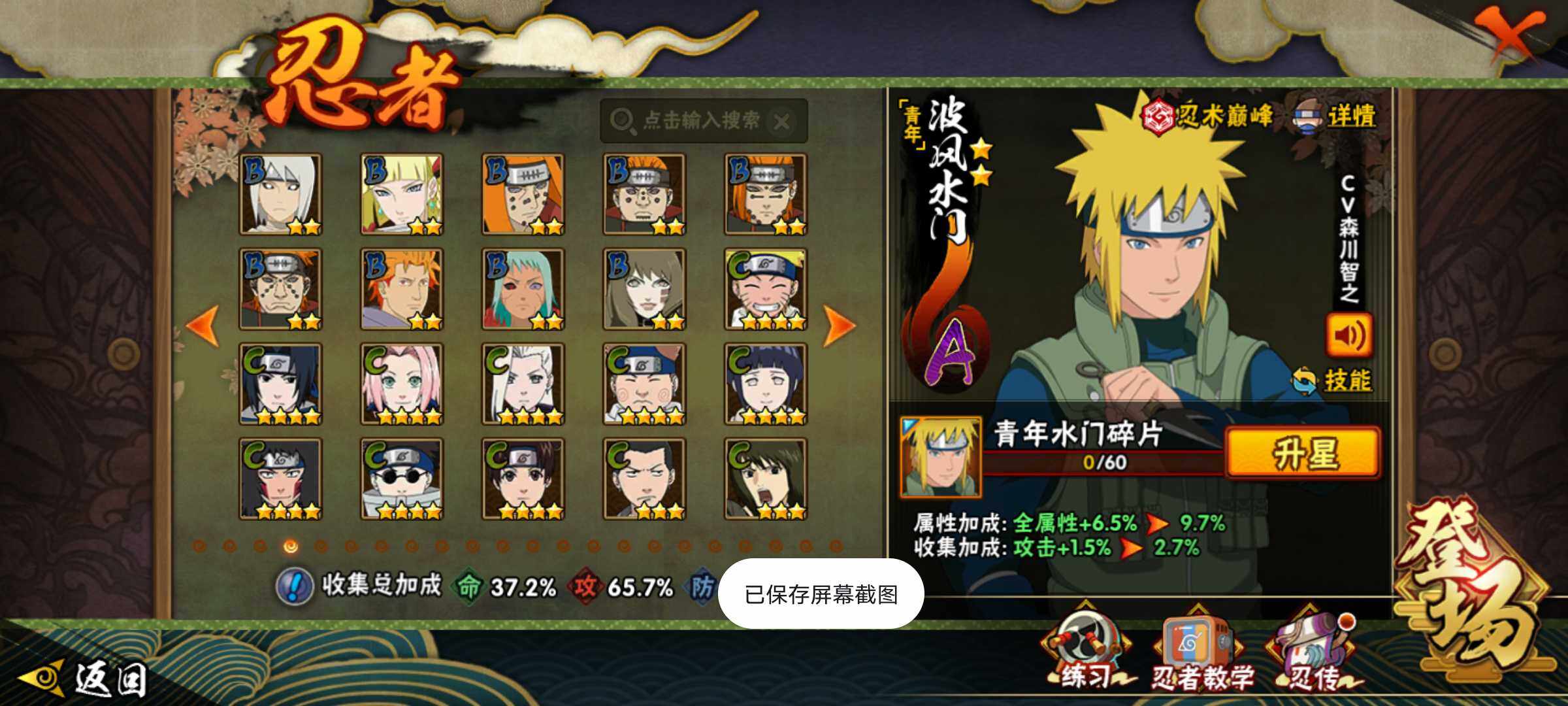 【A级忍者】:艾「青年」(2星),长门「青年」(2星),波风水门「青年」