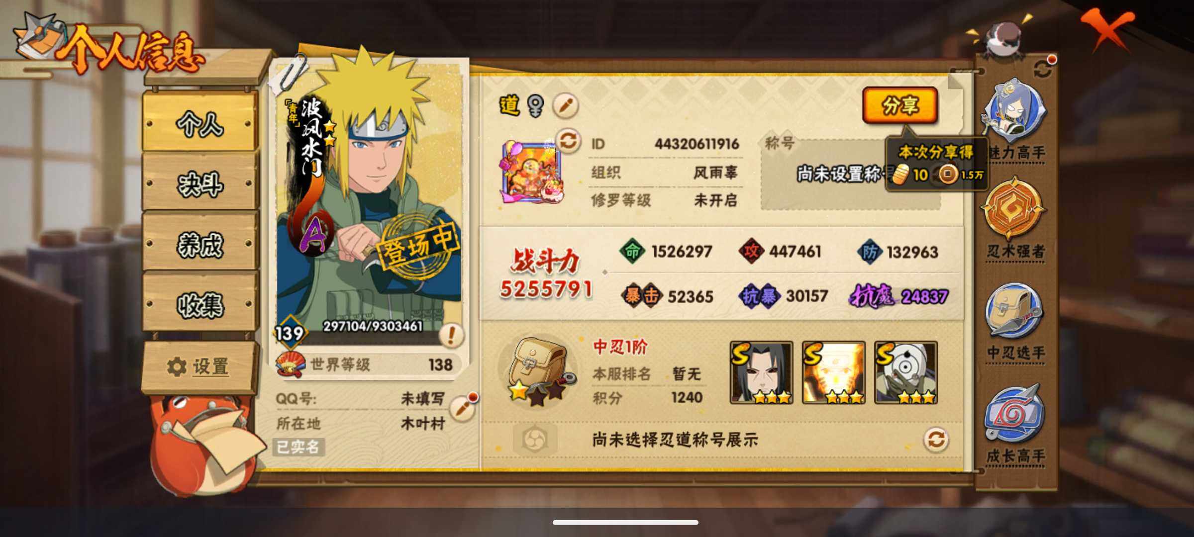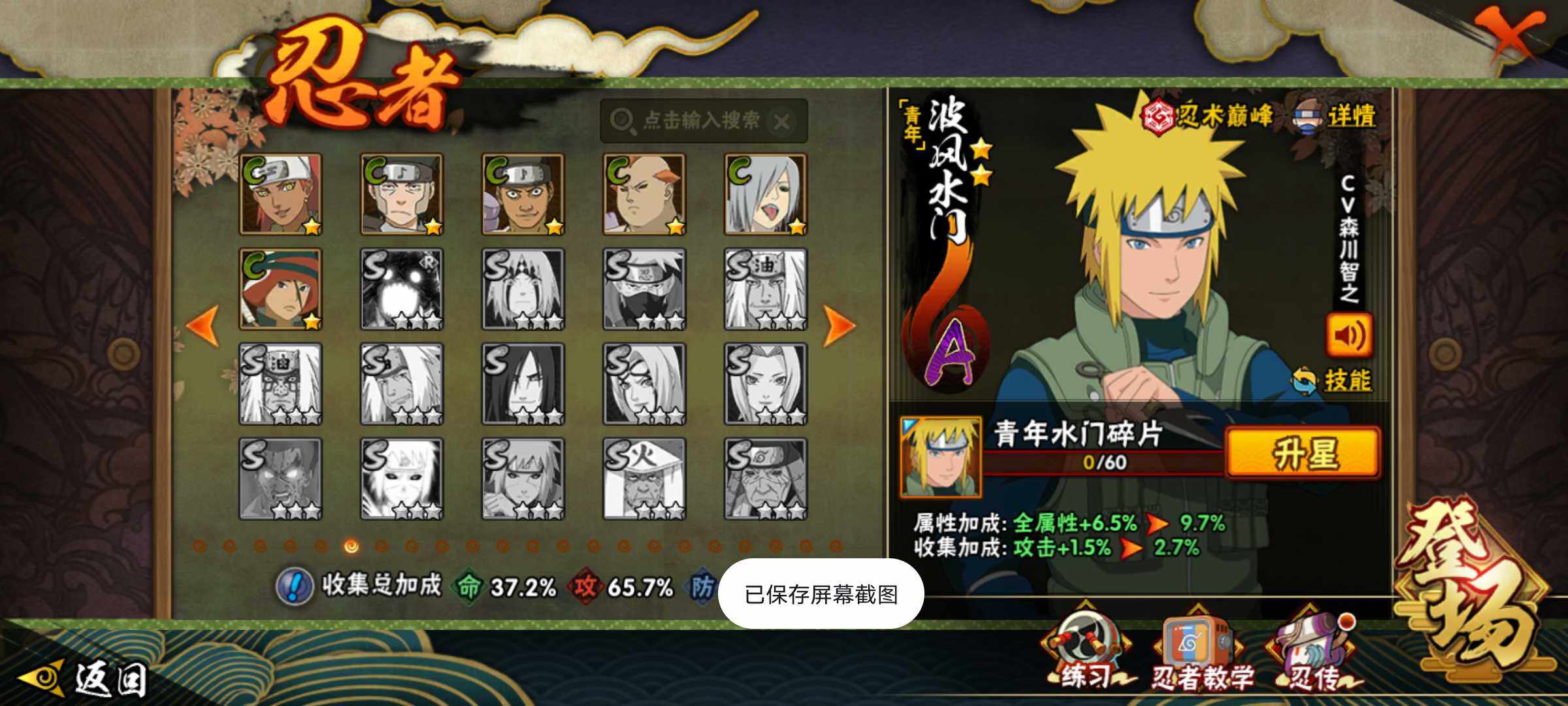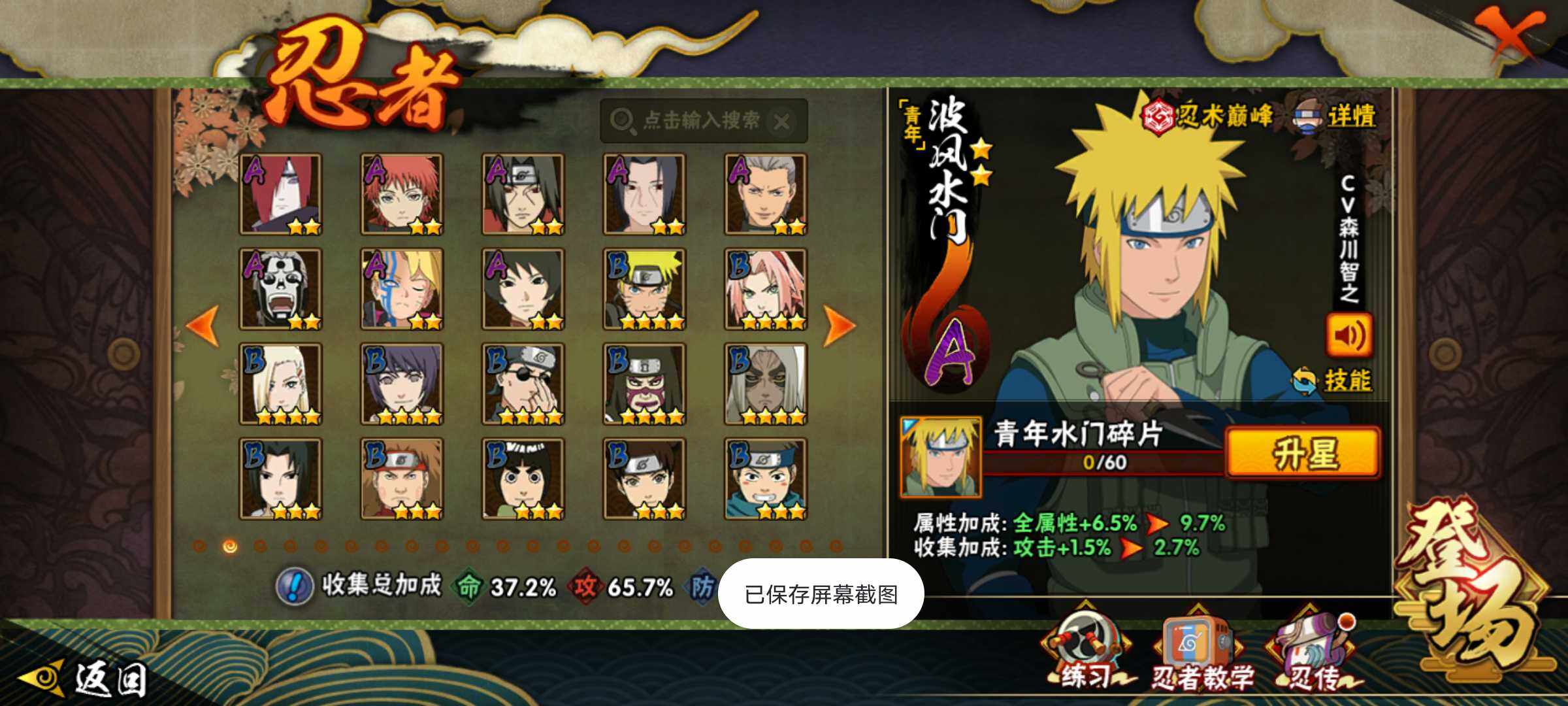 【A级忍者】:艾「青年」(2星),长门「青年」(2星),波风水门「青年」