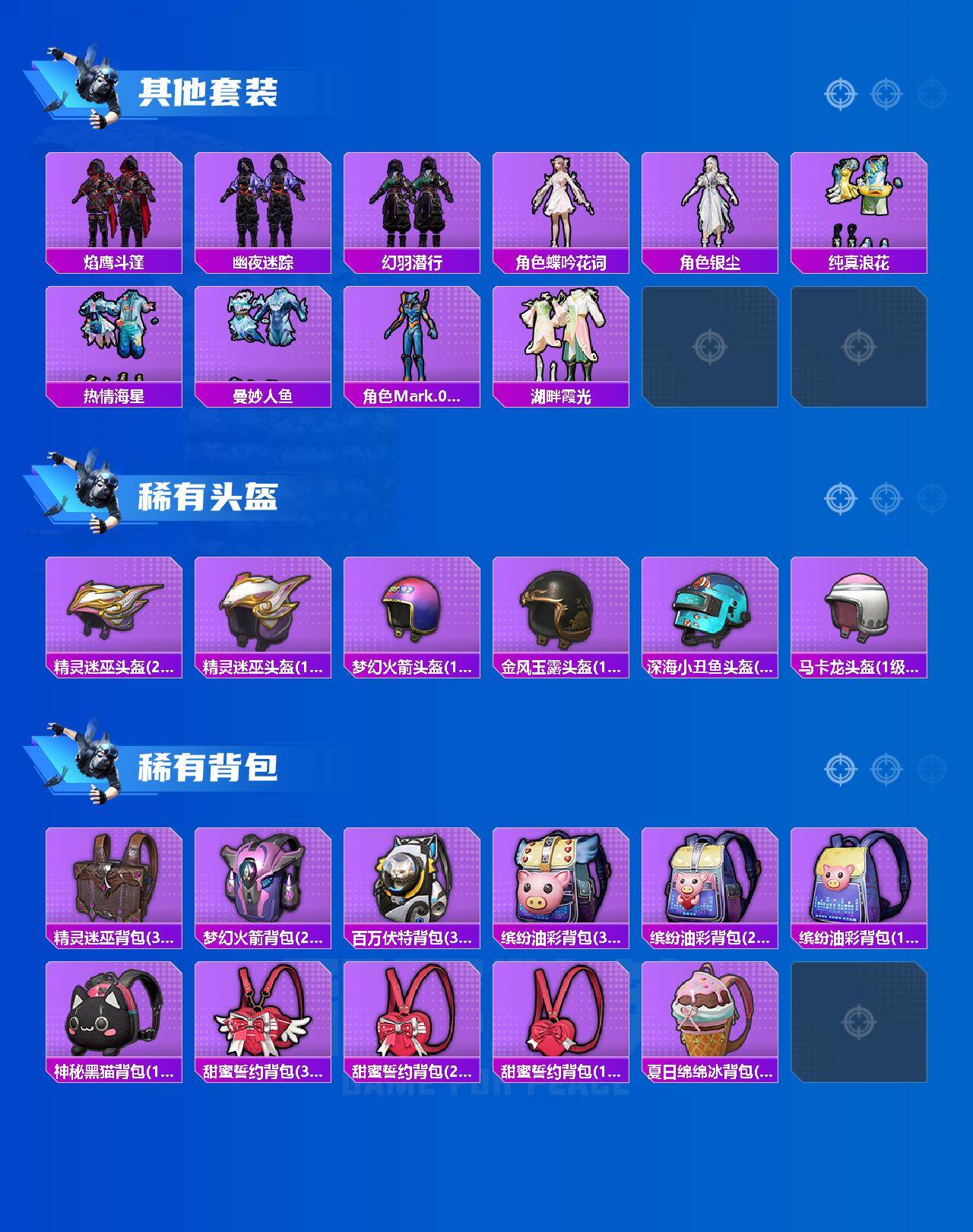 【热门品类】:粉装-梦幻火箭,粉装-缤纷油彩,绝对防御上衣,套装-浪漫天命,套装-赤蝎幽灵,套装-都市猎人,套装-派对舞王,套装-小丑鱼,套装-天网终结者,套装-动感兔斯基人偶服,套装-龟仙人,套装-暗影哥特,套装-浪漫波比,角色-Mark.06