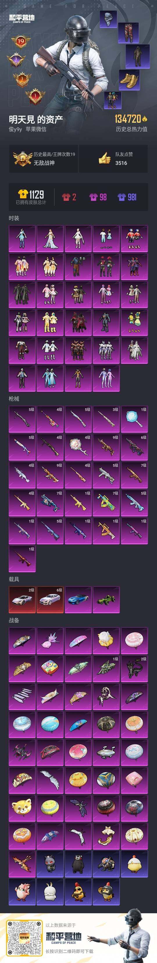 苹果 微信-无敌战神框-29粉装-26特效枪-4载具-12粉色飞行器-134720热力值-19王牌印记-226套装-300枪皮