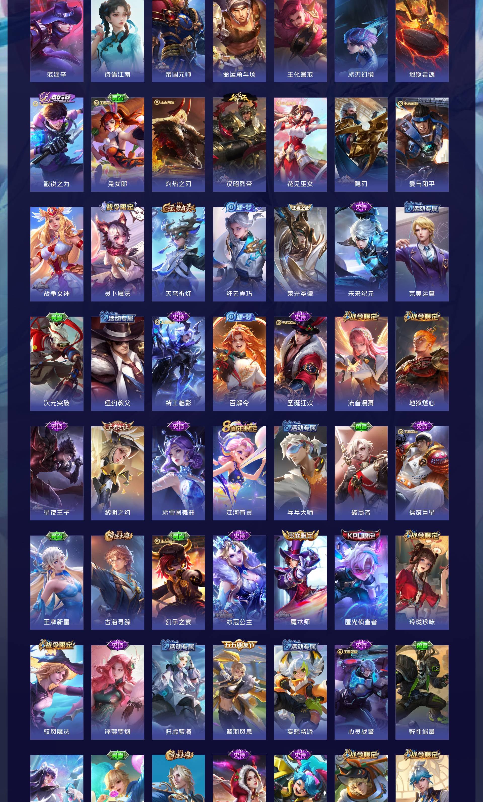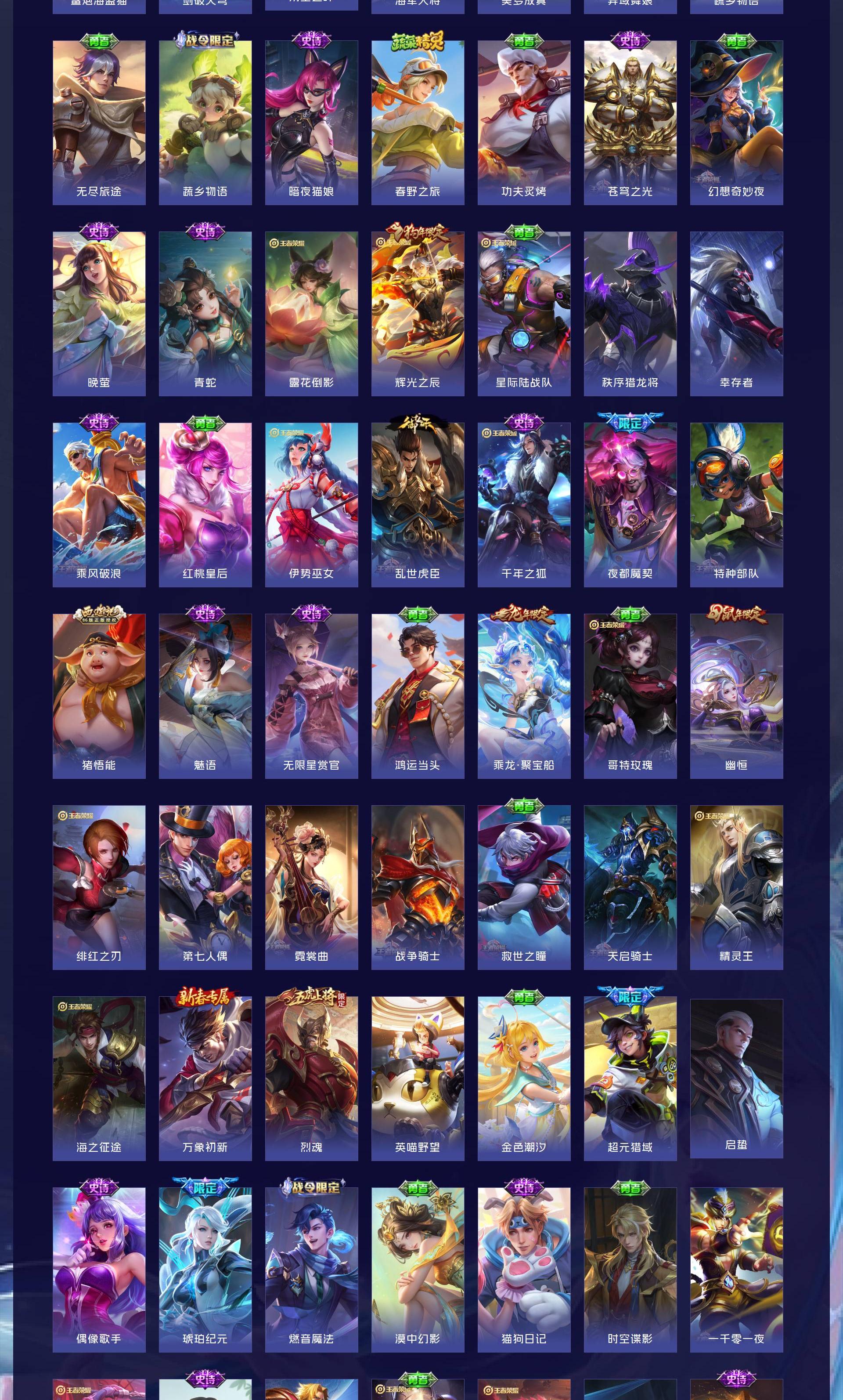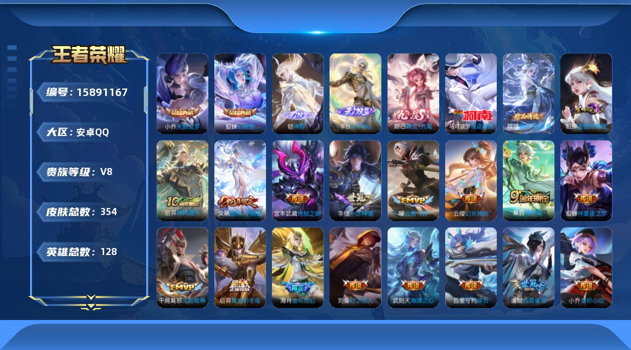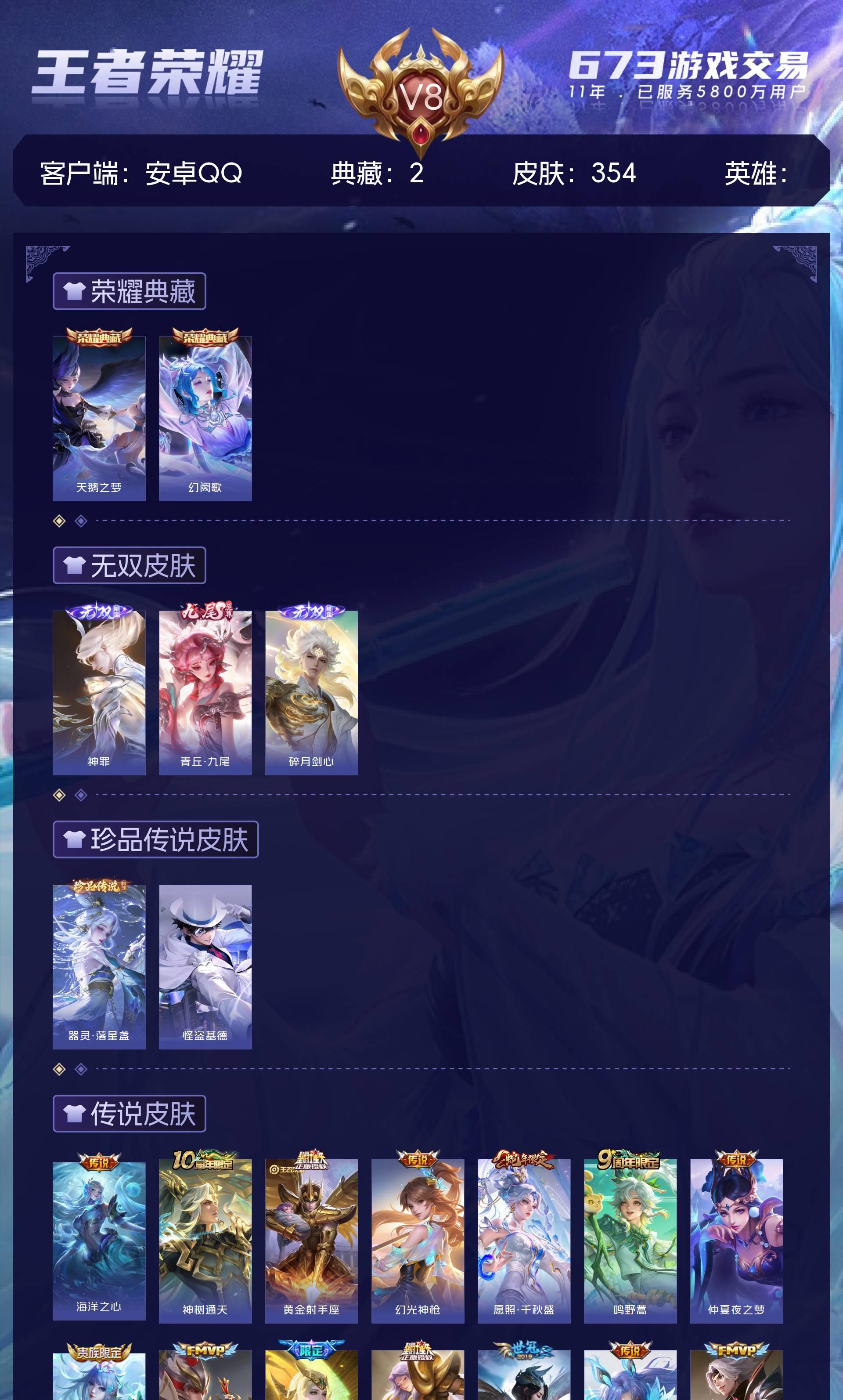 V8 皮肤354 荣耀王者 荣耀典藏2 无双皮肤3 珍品传说2 传说18 其他皮肤333