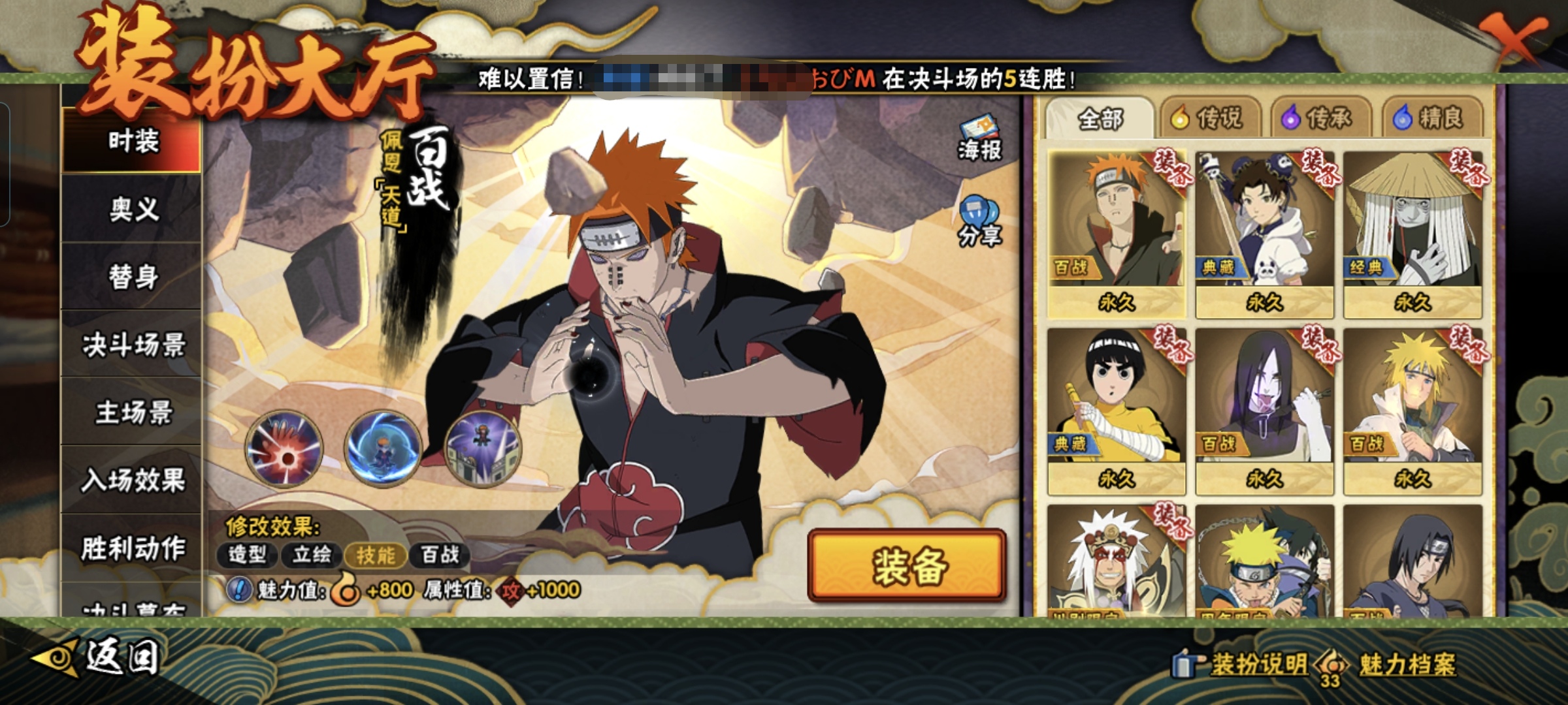 MHY3945【 10s 21A】【区服】2765【等级】143【S级数量】10【A级数量】21【B级数量】54【C级数量】40【S级】宇智波鼬「须佐能乎」 自来也「舞之豪杰」 漩涡鸣人·宇智波佐助 波风水门 佩恩「天道」 大蛇丸 春野樱「忍界大战」 宇智波佐助「永恒万花筒」 宇智波斑「秽土转生·解」 宇智波带土「忍界大战」