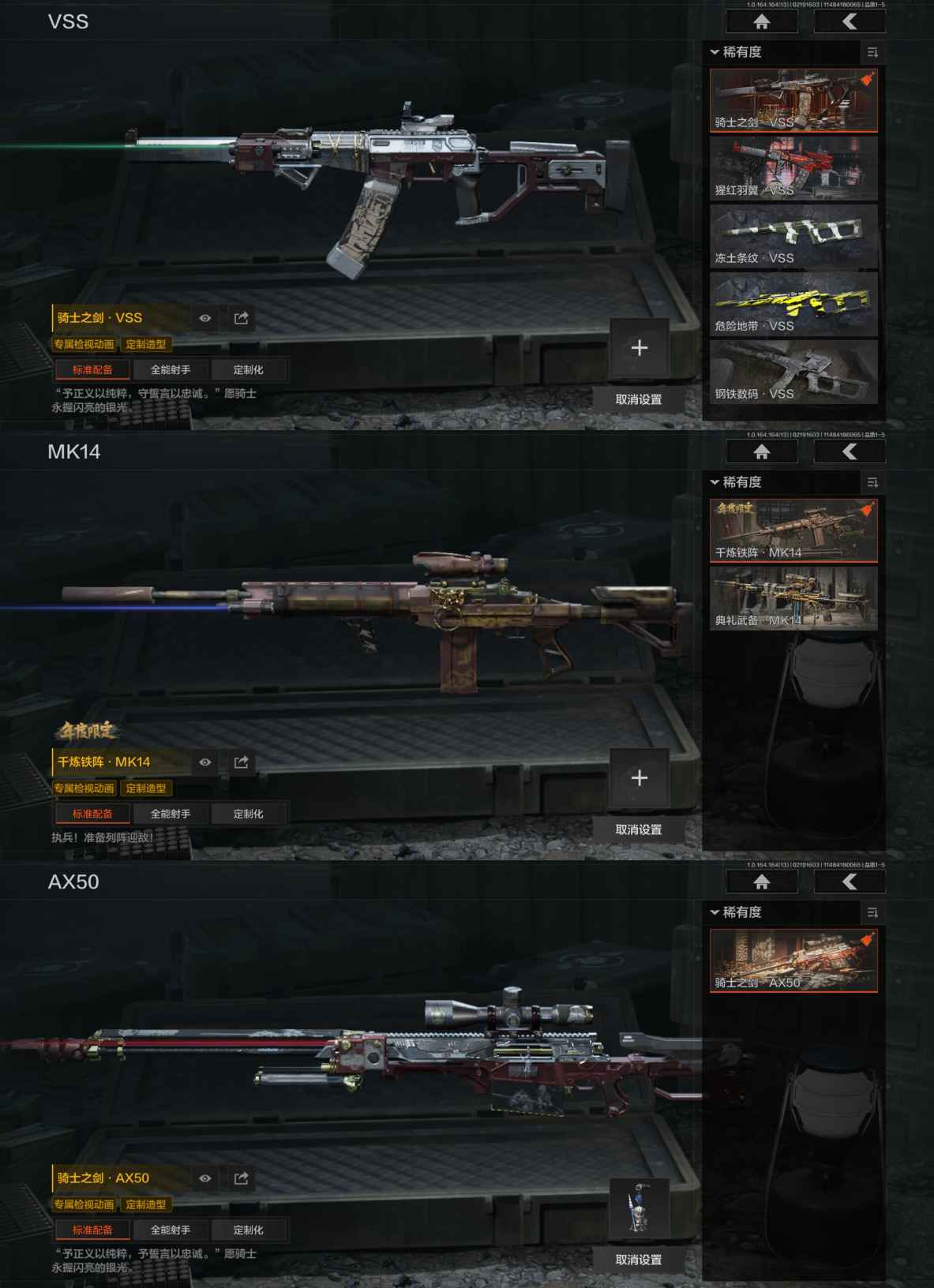 MWT4666【极品刀皮号瑞兔折刀 空腔战术 赢家匕首 3金衣 年限长夜干军武将 骑士典范艾尔熙德 白蔷薇斯黛拉 9金枪年限干炼铁阵】安卓Q-等级30-仓库价值6.8m-科恩币5932k-【套装】长夜干军·武将 骑士典范·艾尔熙德 白蔷薇·斯黛拉 采青醒狮·套装 长夜干军·十夫长作战套装 极地拼图迷彩作训服【枪皮】包络战术·AKM 伦琴幻影·H416 告丧夜曲·AUG 百锻铁骑·AEK 旧王圣谕·QBZ191 利齿风暴·MPX 骑士之剑·VSS 干炼铁阵·14 骑士之剑·AX50 【近战武器】瑞