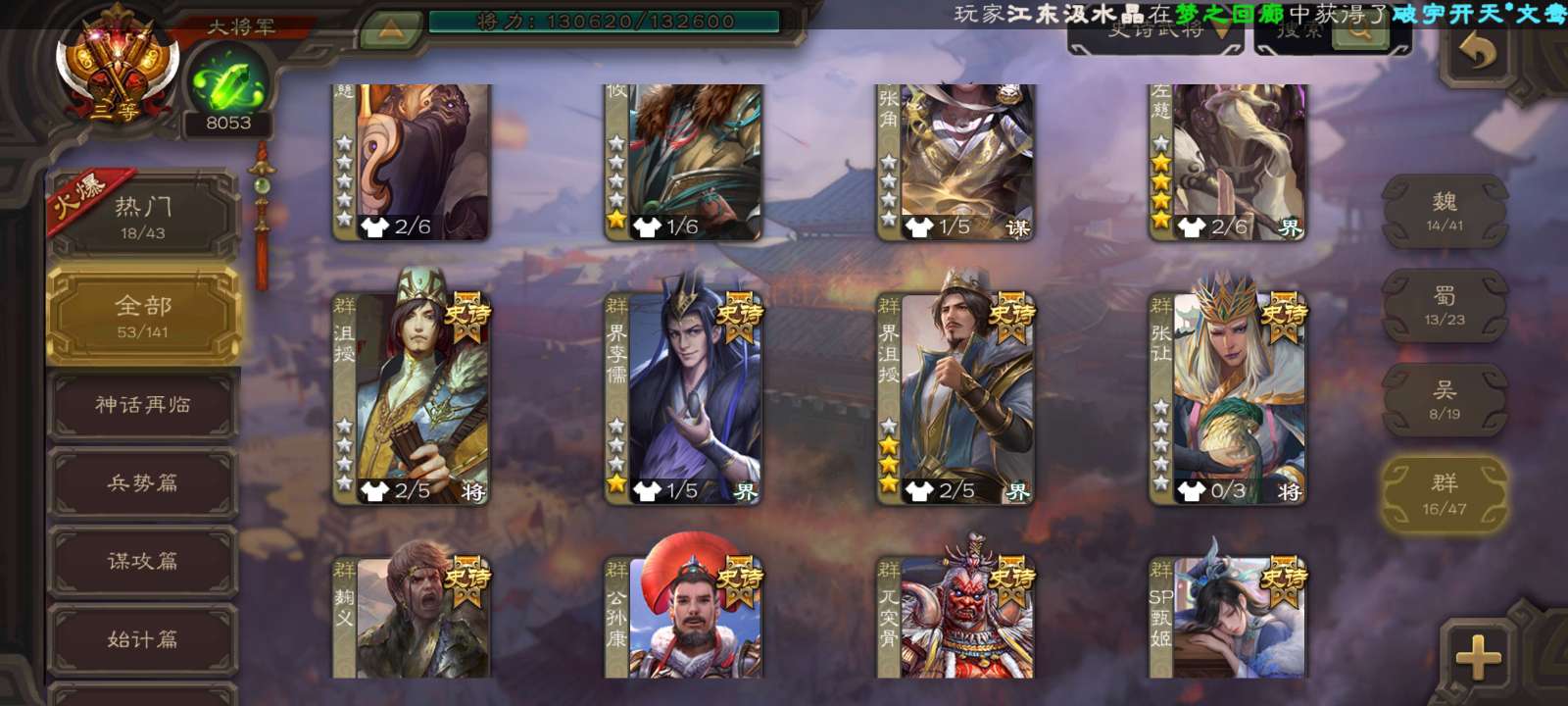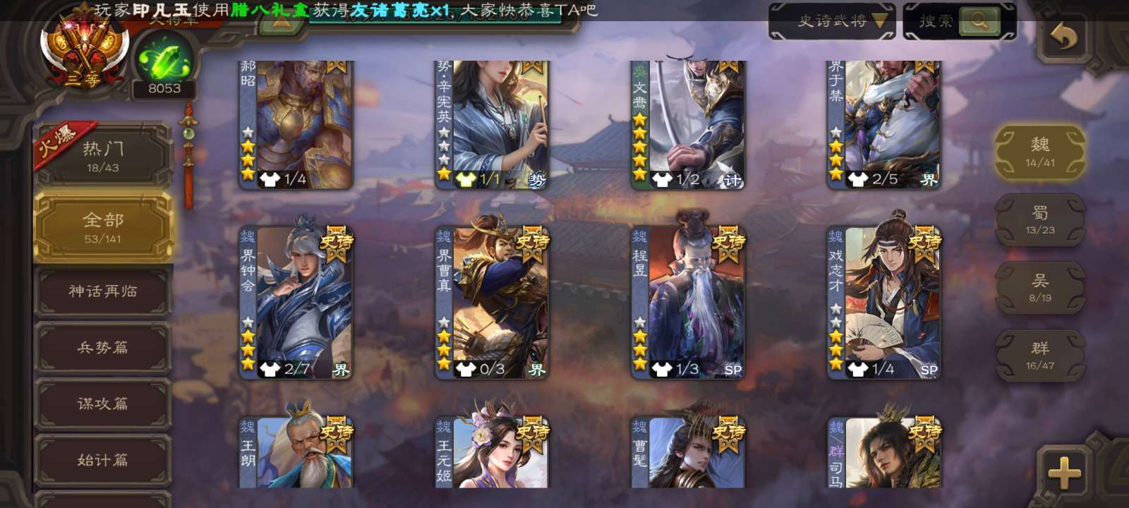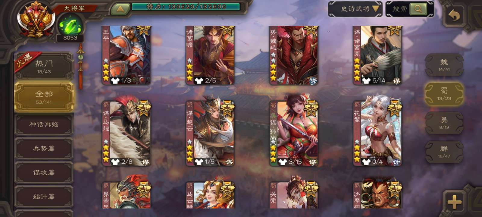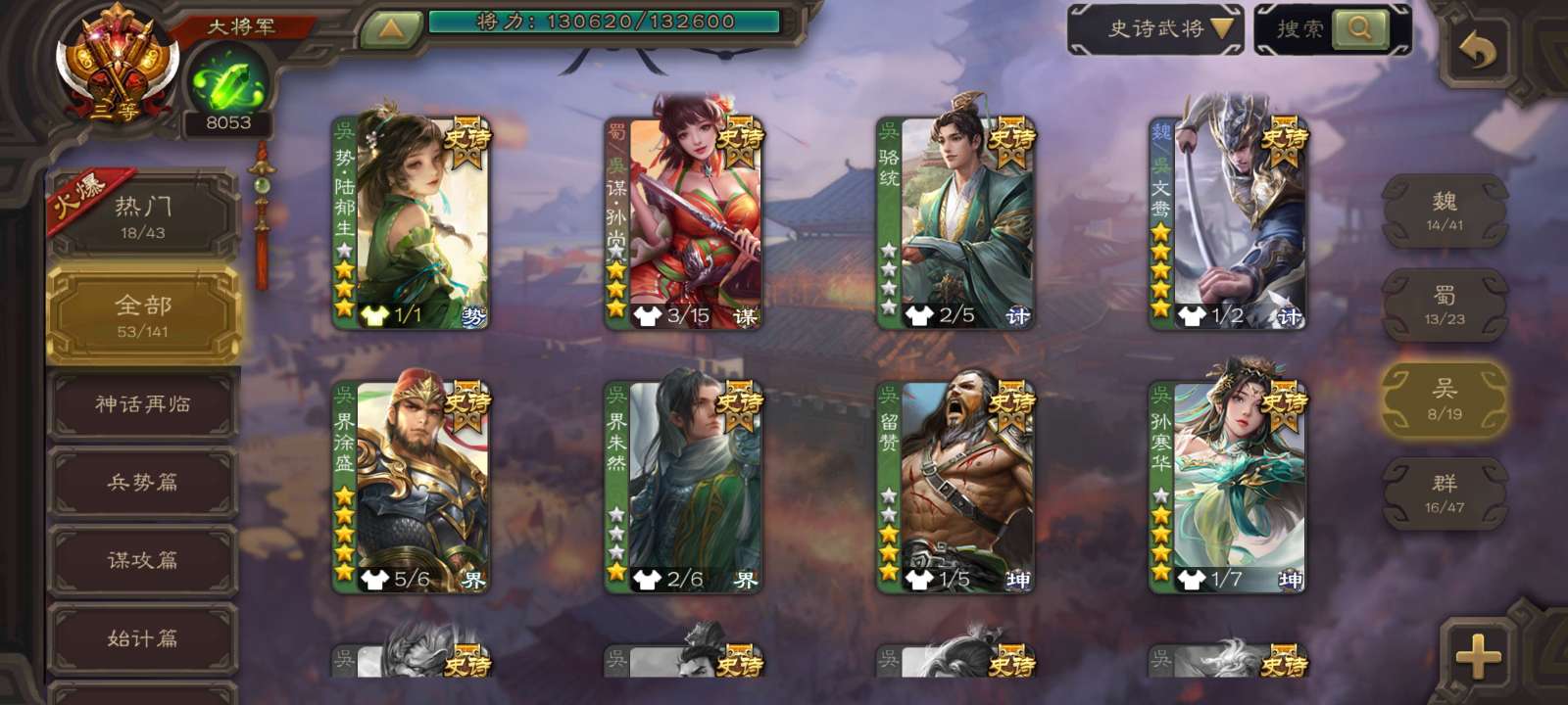 史诗武将数量: