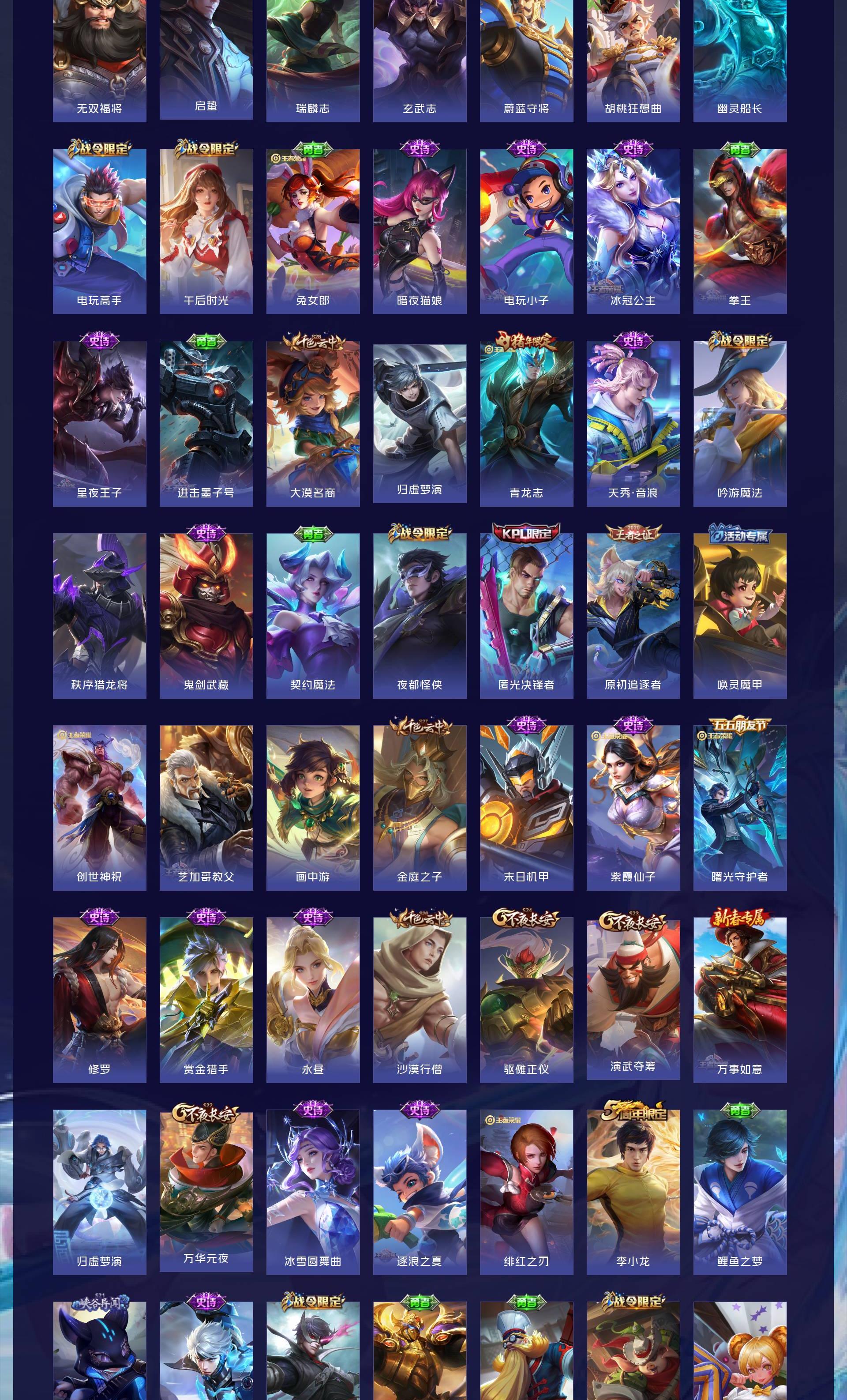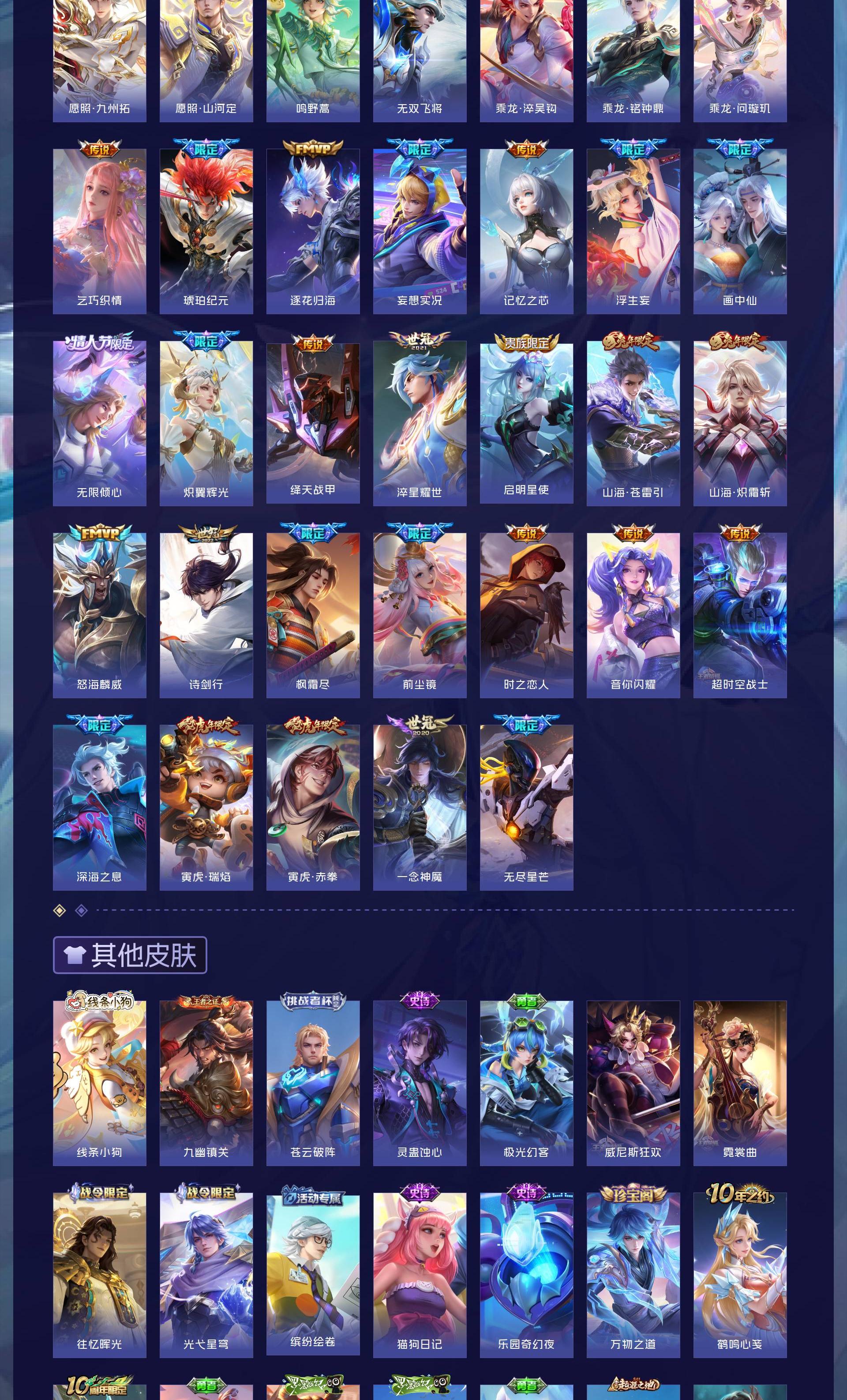 贵族9/皮肤406/典藏3/传说42/史诗119/英雄127/小国标赵云/金标诸葛亮/金标裴擒虎/金