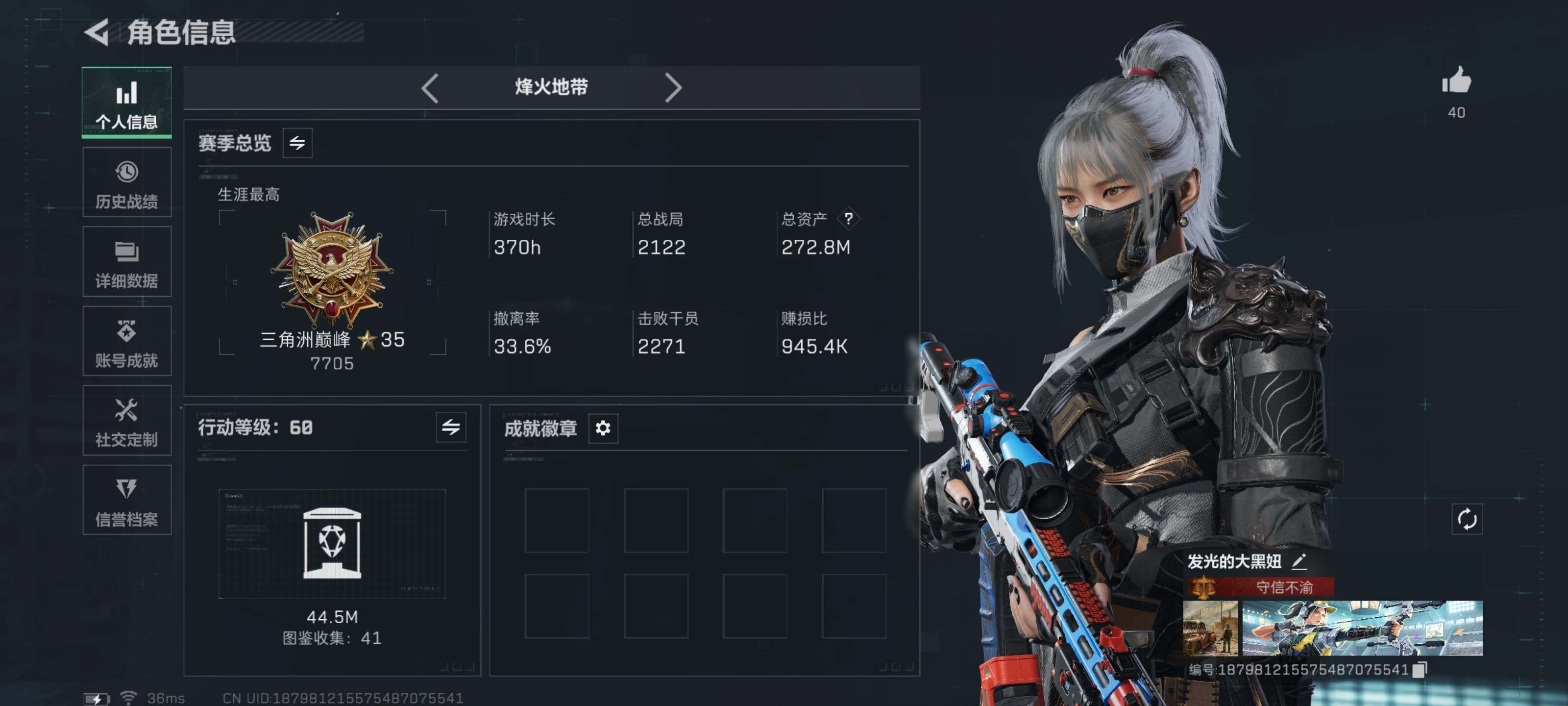 【特价出售/店主推荐】272m总资产-94256k哈伏币-60烽火等级-黑鹰-11战场等级-列兵