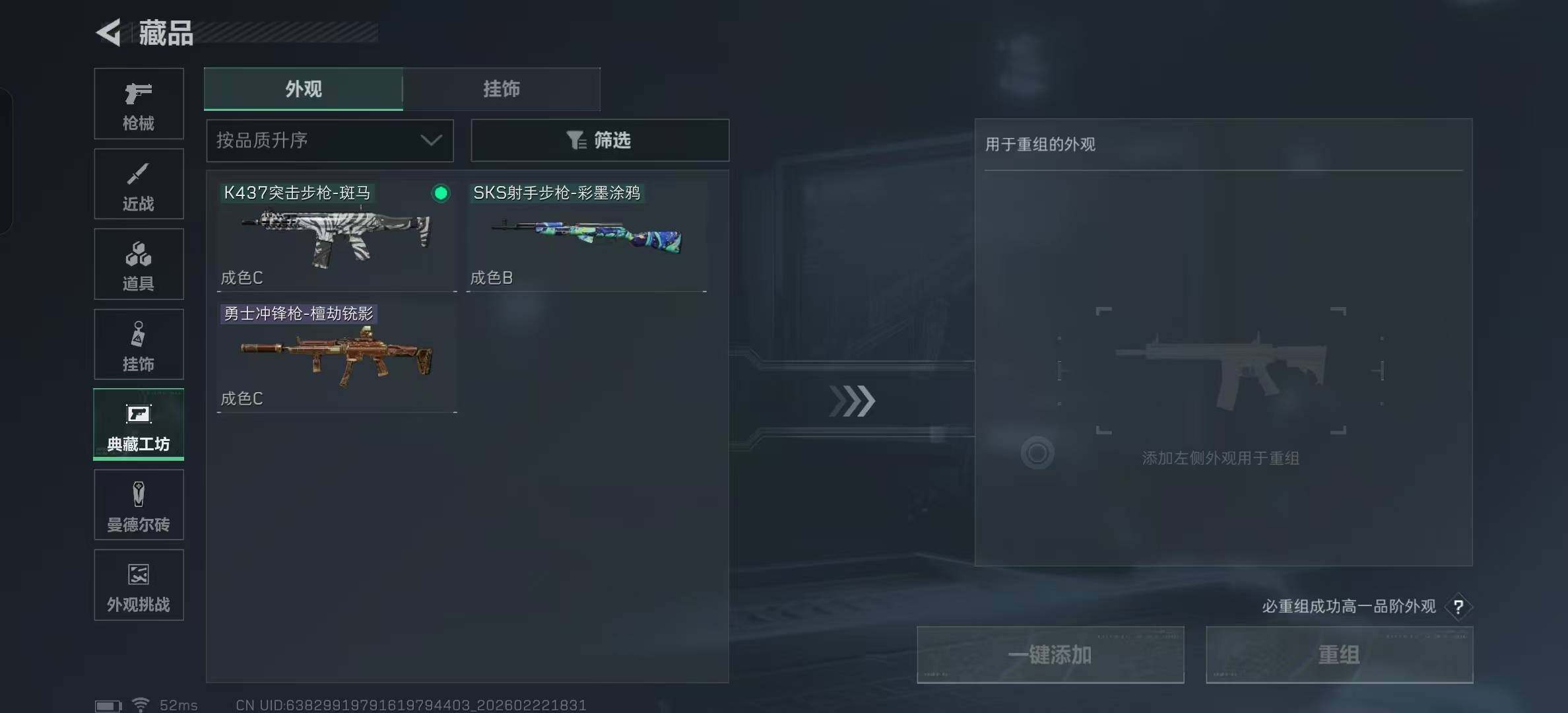 【史诗外观】:勇士冲锋枪-檀劫铳影,G3战斗步枪-哈夫克警备,腾龙突击步枪-猎鳄行动,MP5冲锋枪-竞技风,SMG-45冲锋枪-阿萨拉特攻,MP7冲锋