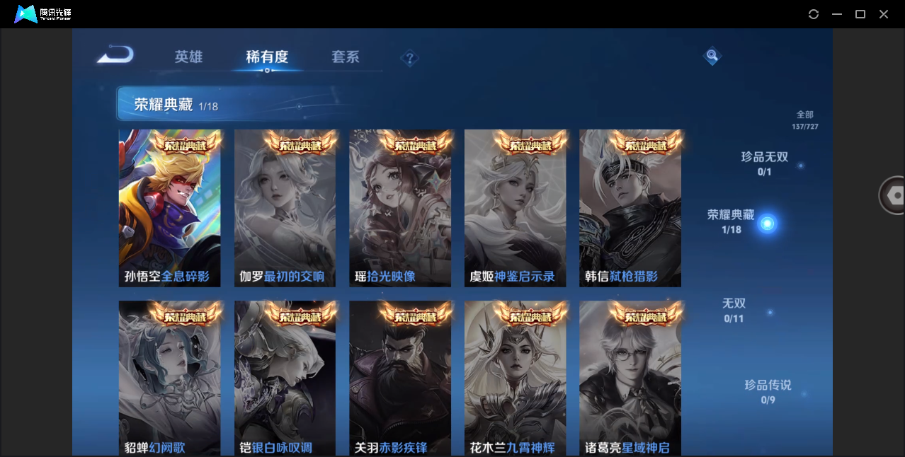 V6-至尊星耀I段位-125英雄-137皮肤-1典藏-0珍品无双-0无双-0珍品传说-4传说-42史诗