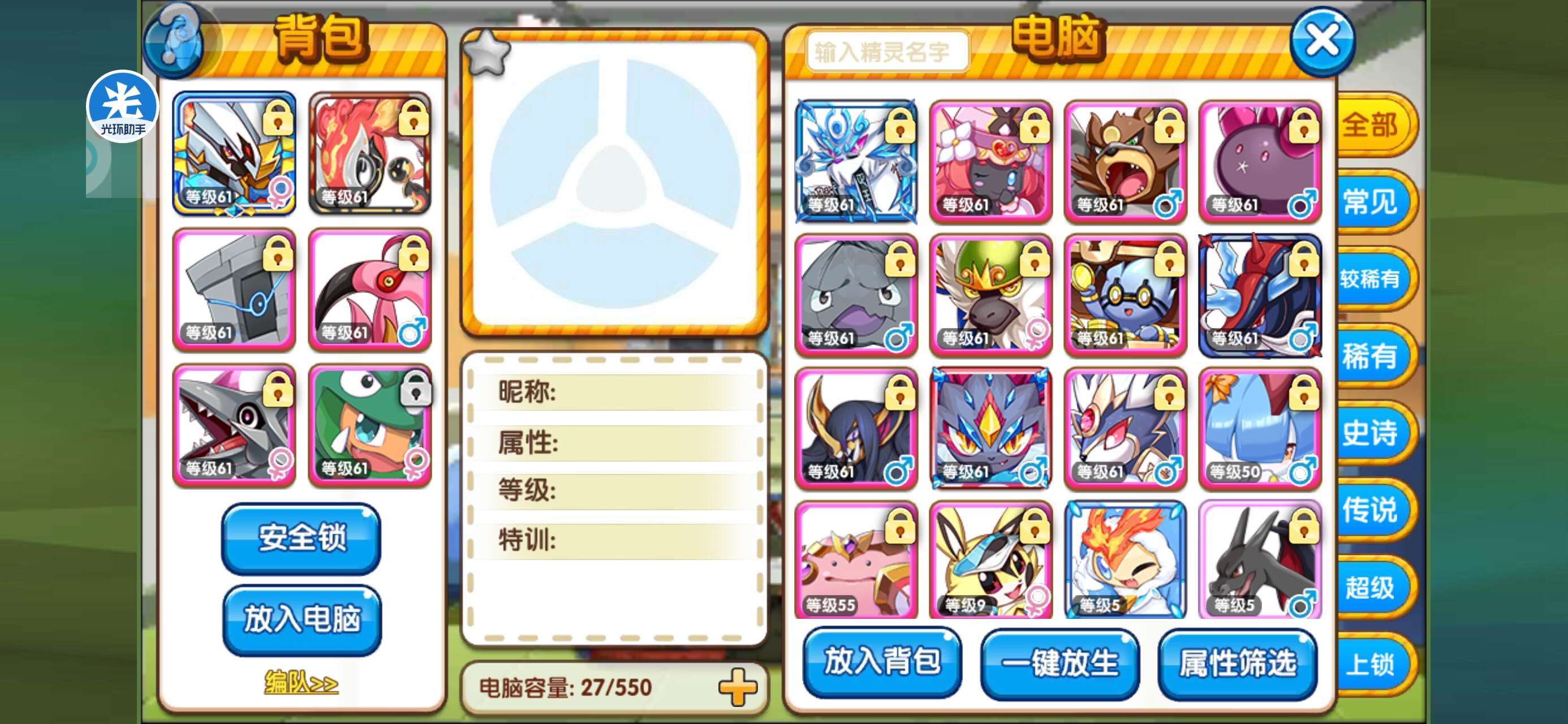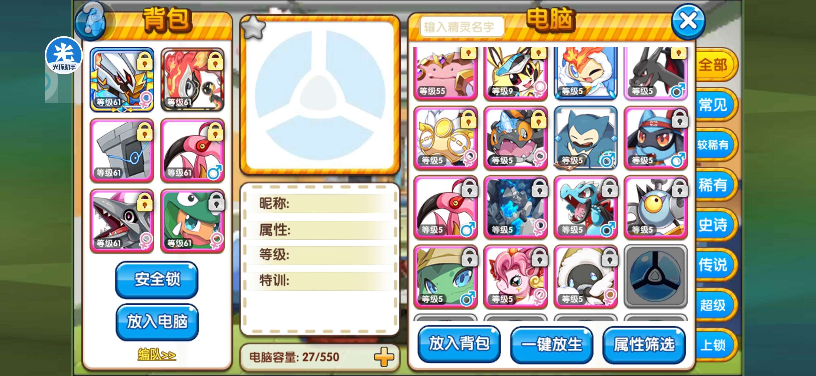 tt玩家,卡61级鬼骑专属古玉鱼鳕鱼垒岩石豹子月月熊日月精灵