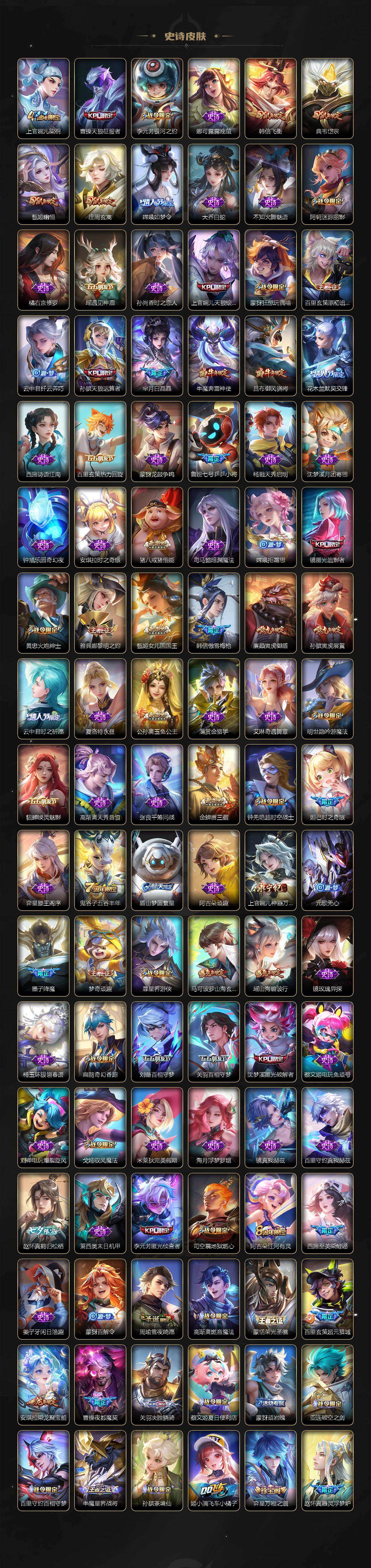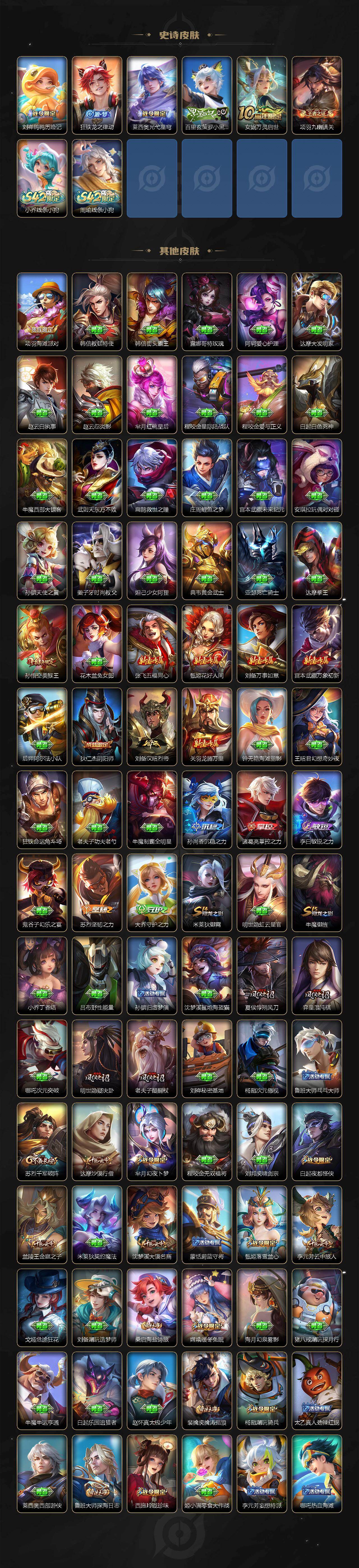 129英雄-475皮肤-7典藏皮肤-1典藏英雄-2无双-2珍品传说-87传说-163史诗