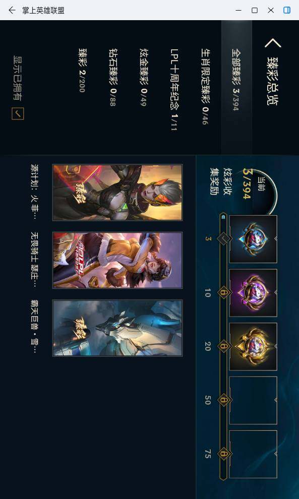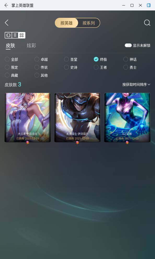 青铜段位-172英雄-576皮肤-147炫彩-3终极-15神话-100限定-61传说-144史诗