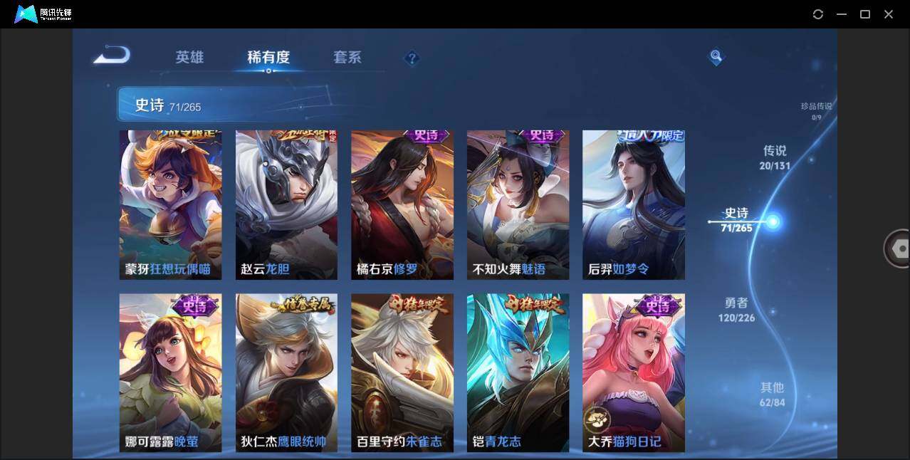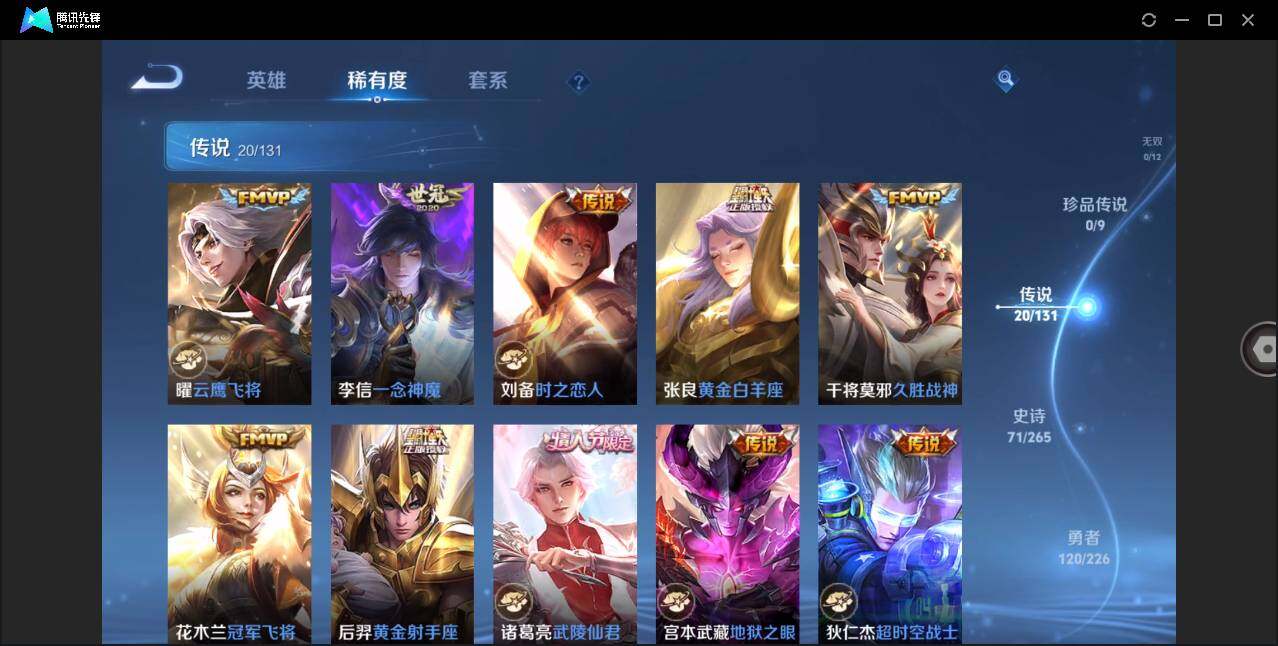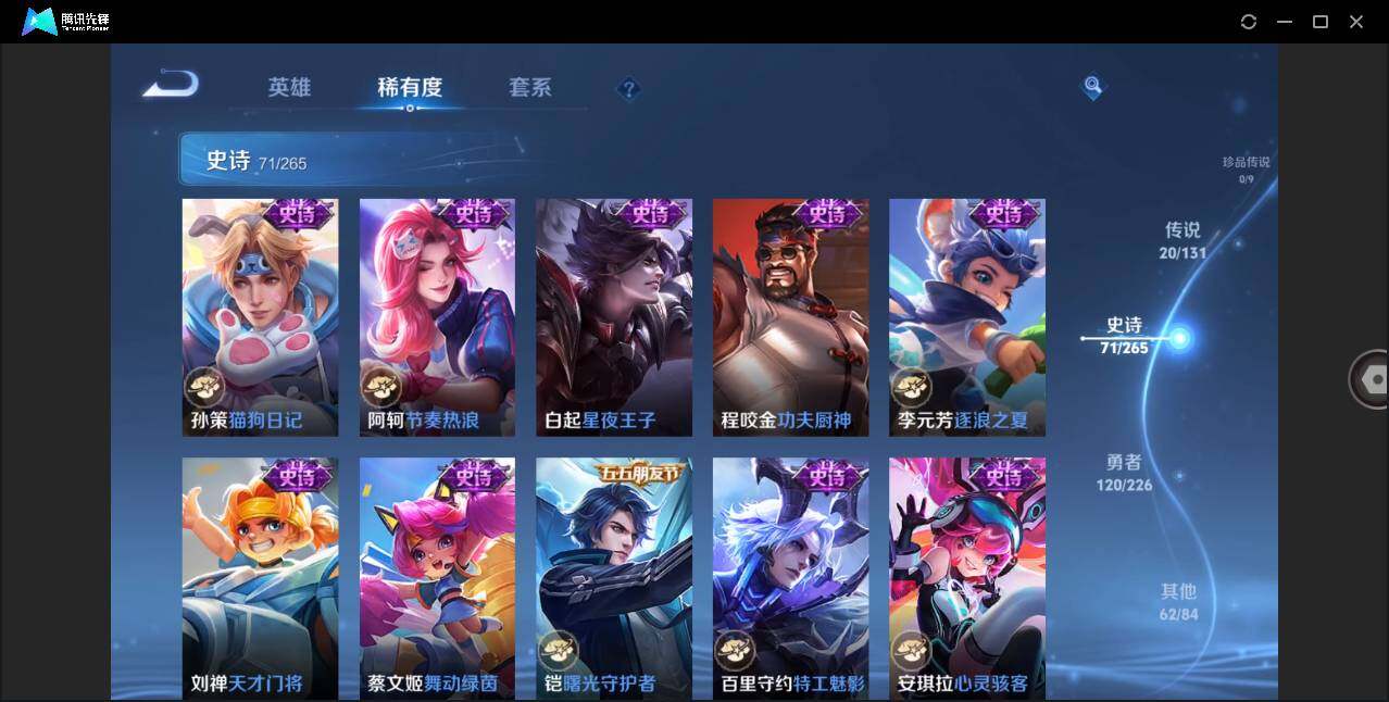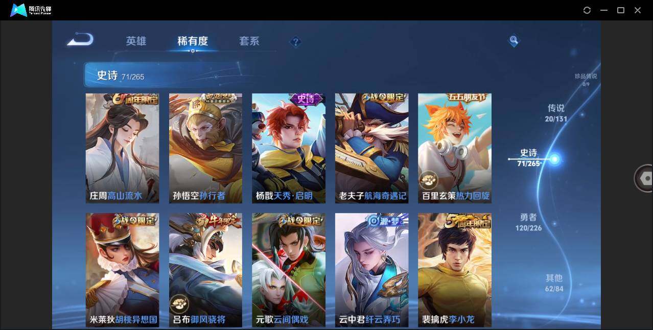 安卓Q-V6-最强王者段位-126英雄-274皮肤-1典藏皮肤-20传说-71史诗