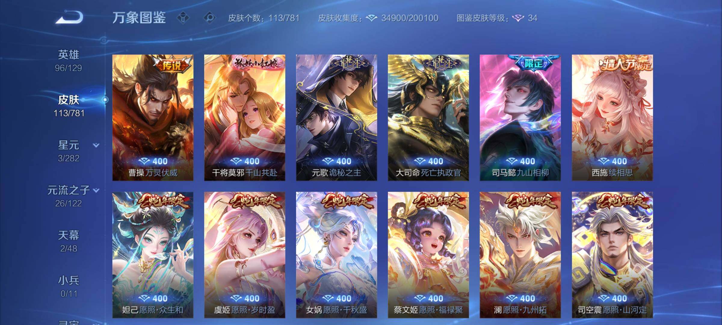 【8无双极品V8号,貂蝉繁花全套,蛇年套,西施全皮】 1星传说 2天幕 24按
