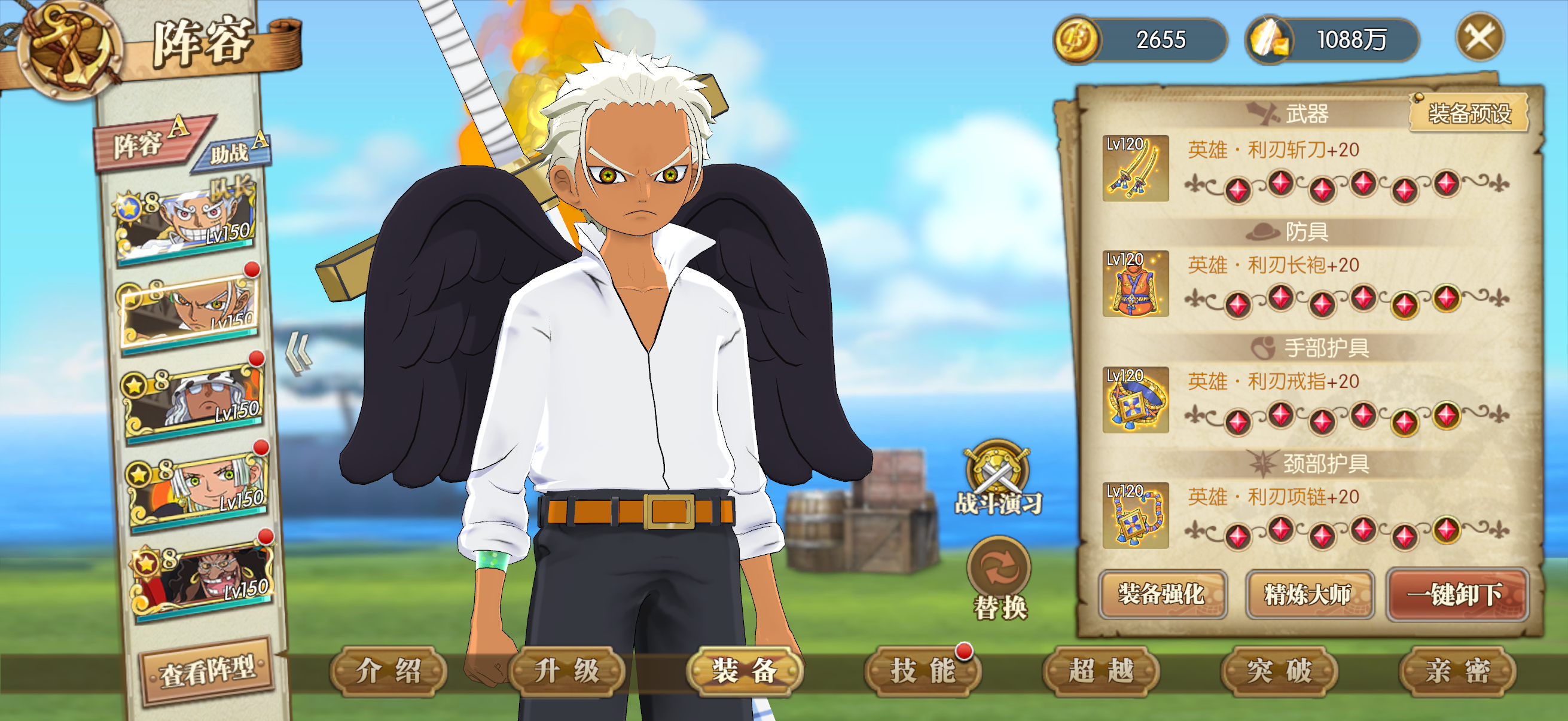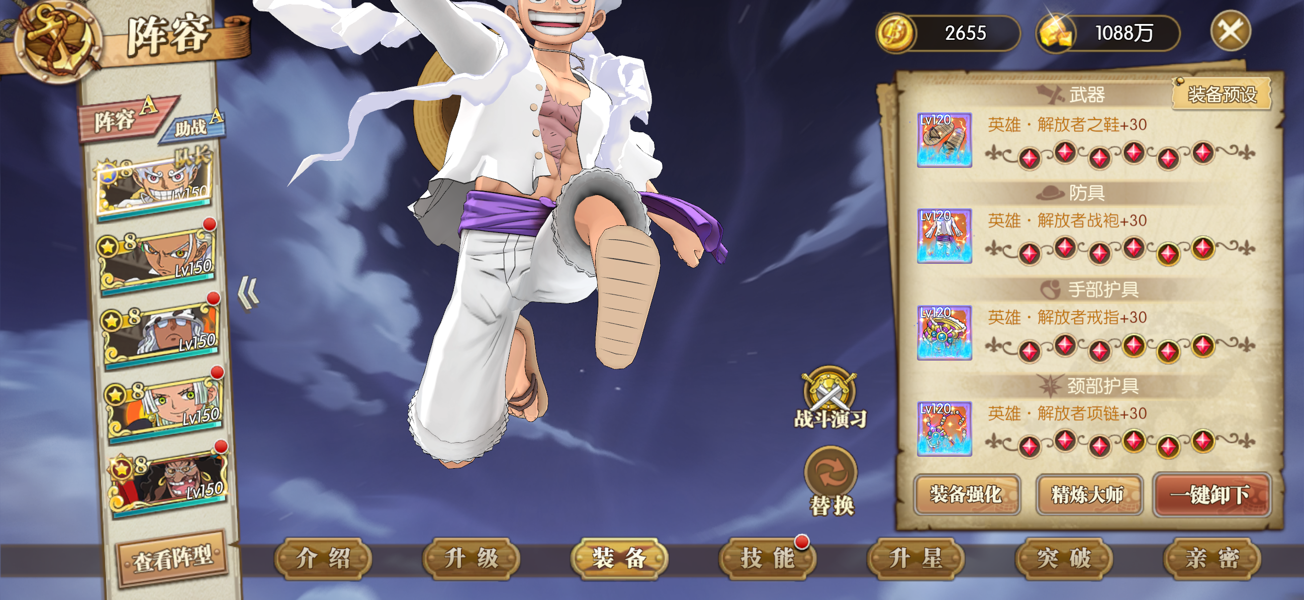 全员千速 解放者套 若月套 利刃套 海贼王套 王者套 两套精准 两套凯旋 暴走套 毁灭套 卓越套 两套游侠 16套极品附魂 10级白船满技能 五级阵极伤抗敌 80多个八星人物 图鉴只差一 龙凯 罗杰双