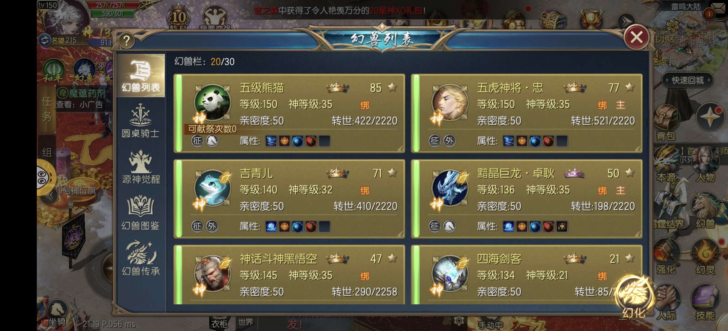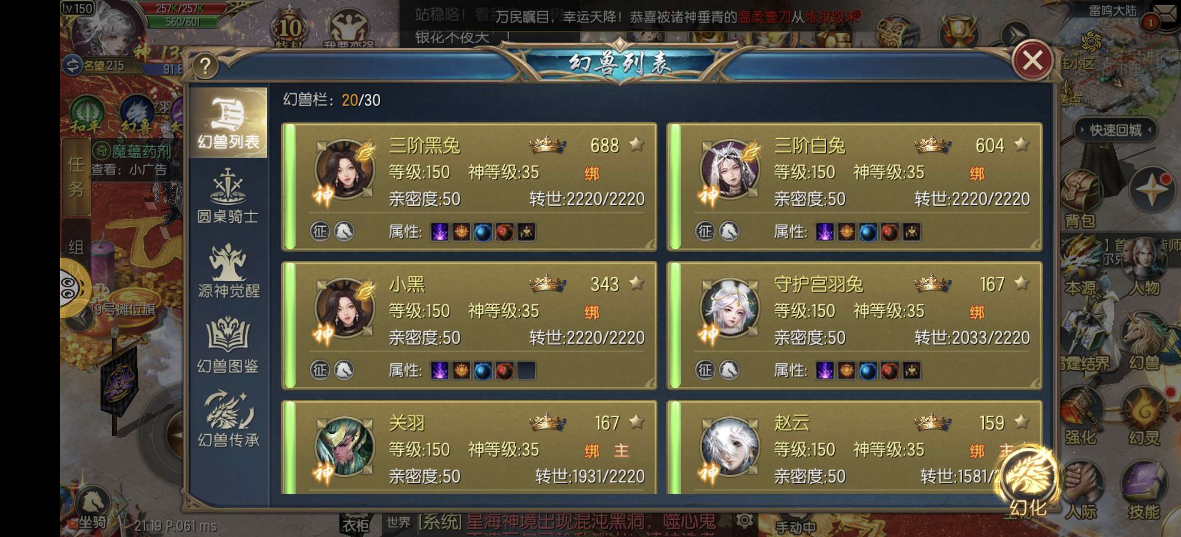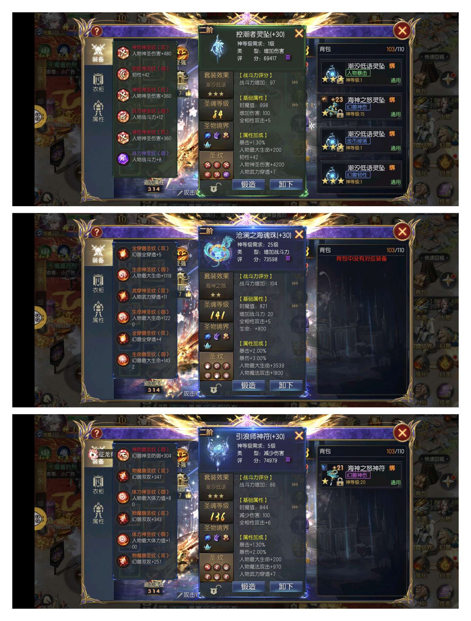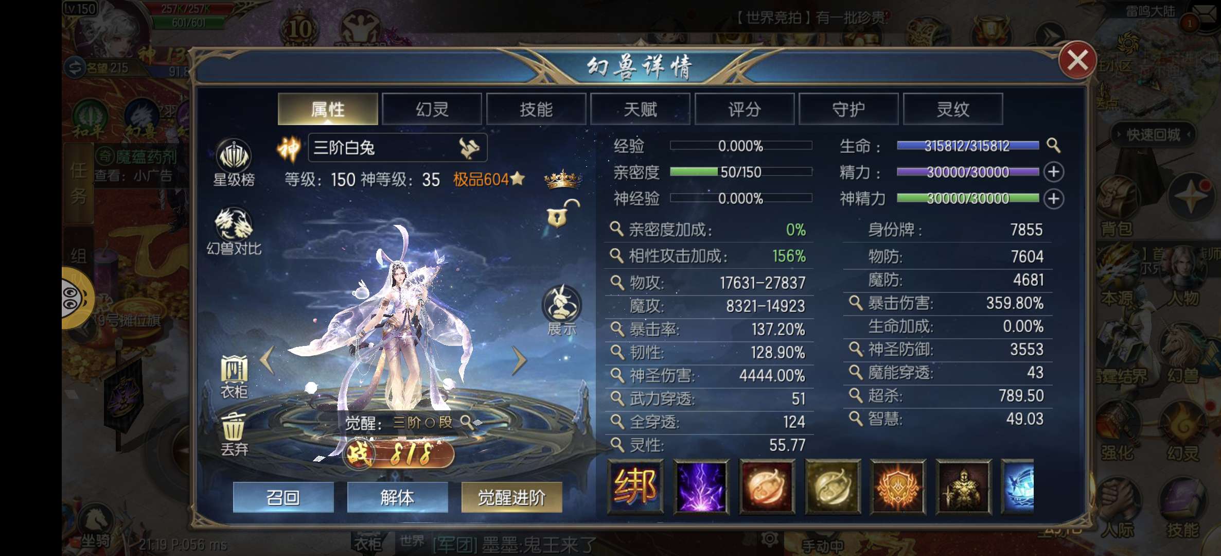 装备:一套三洞,项链是4洞,属性装备,武器神启260,项链手镯神意,幻穿套