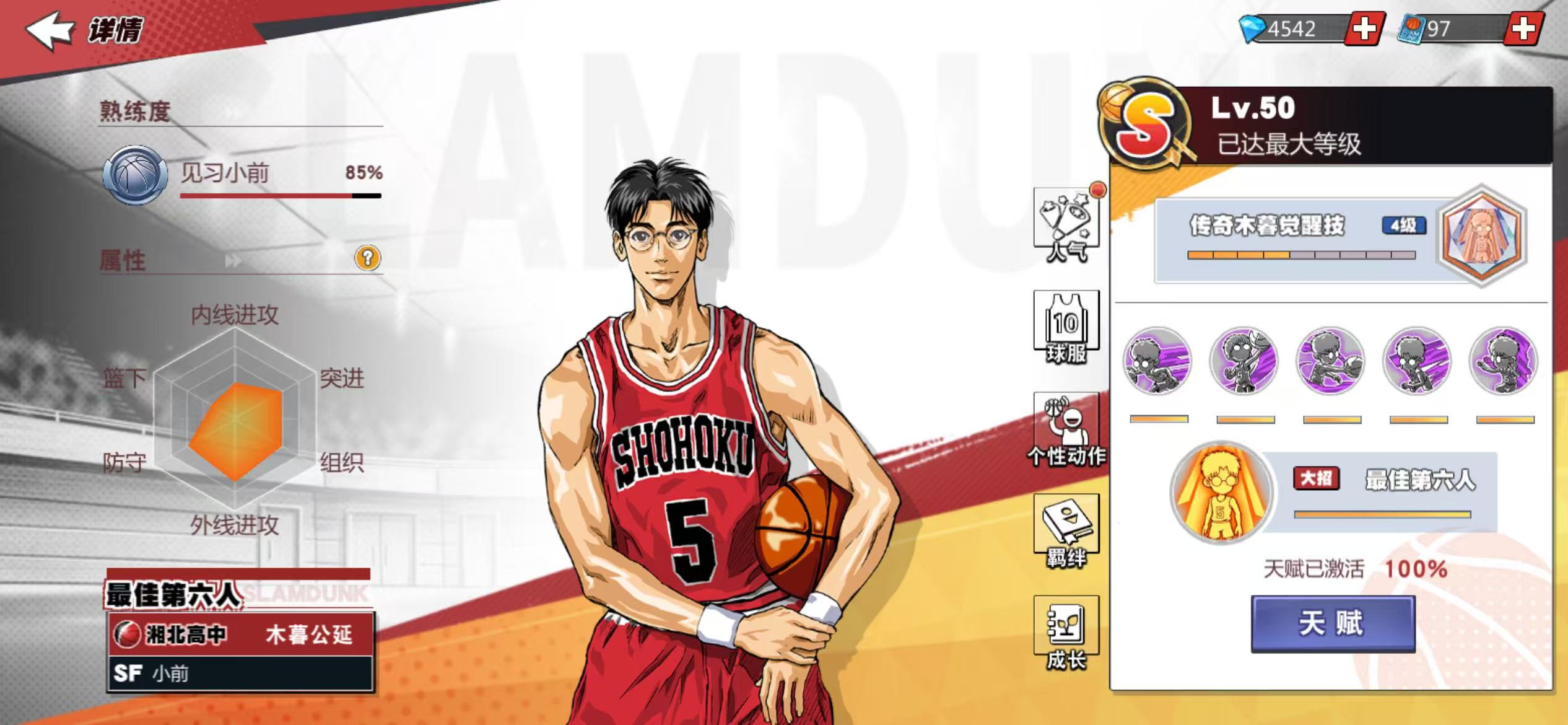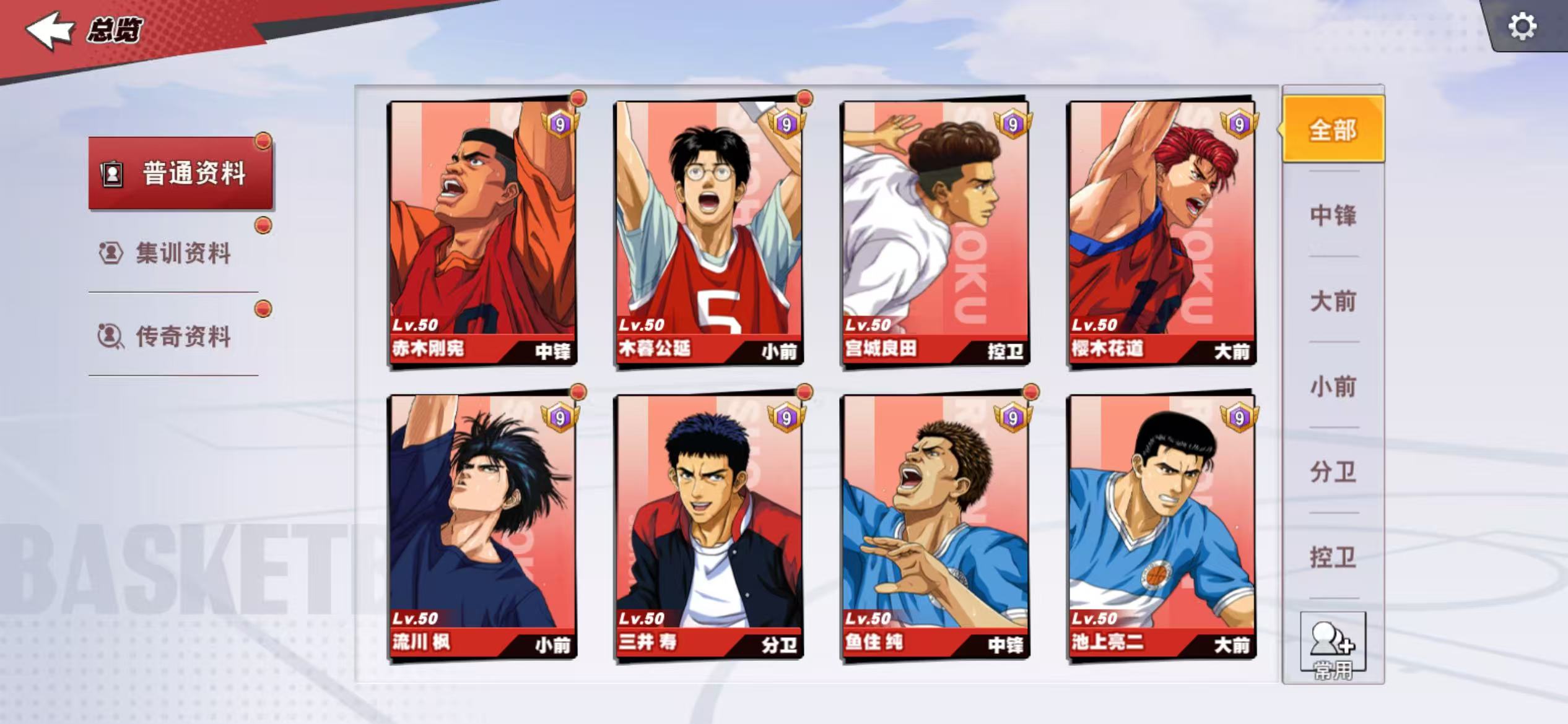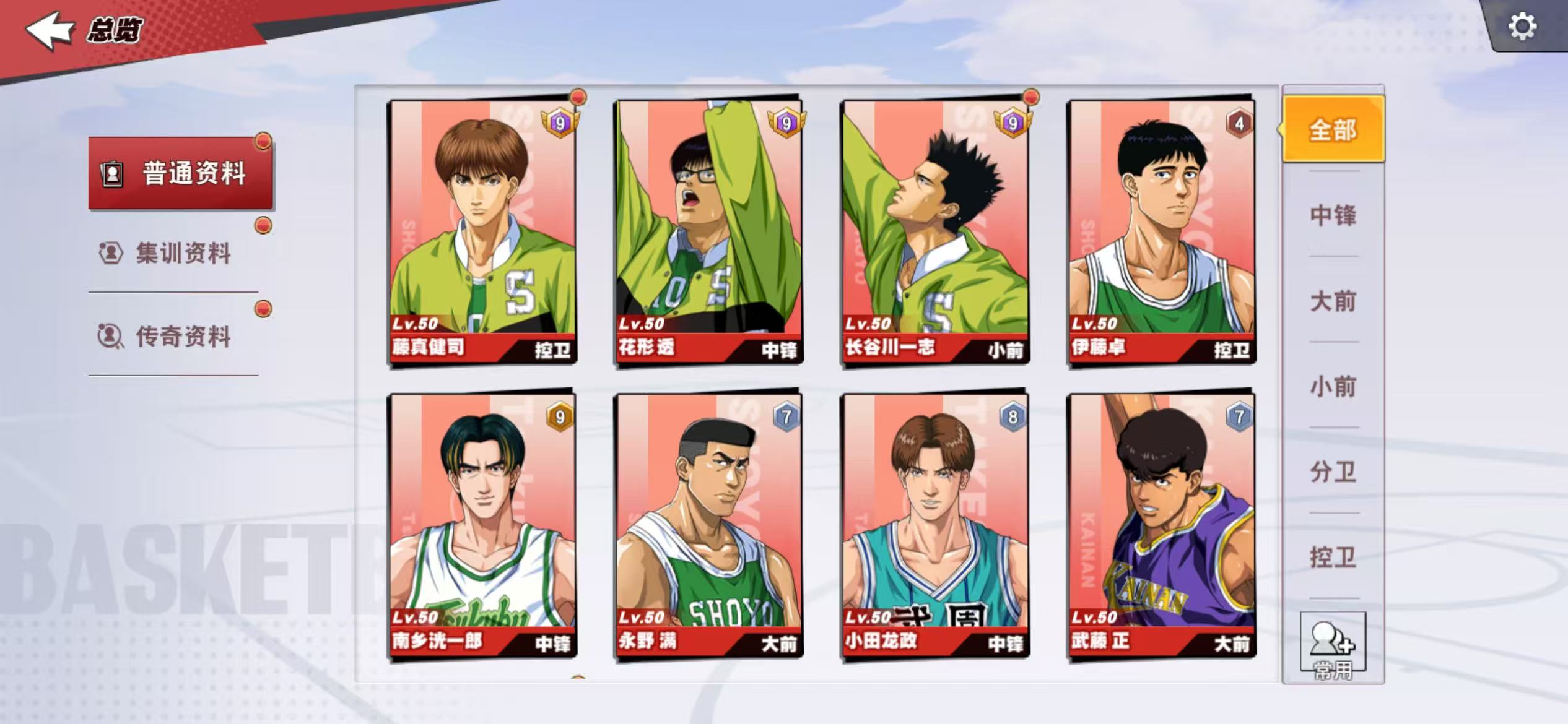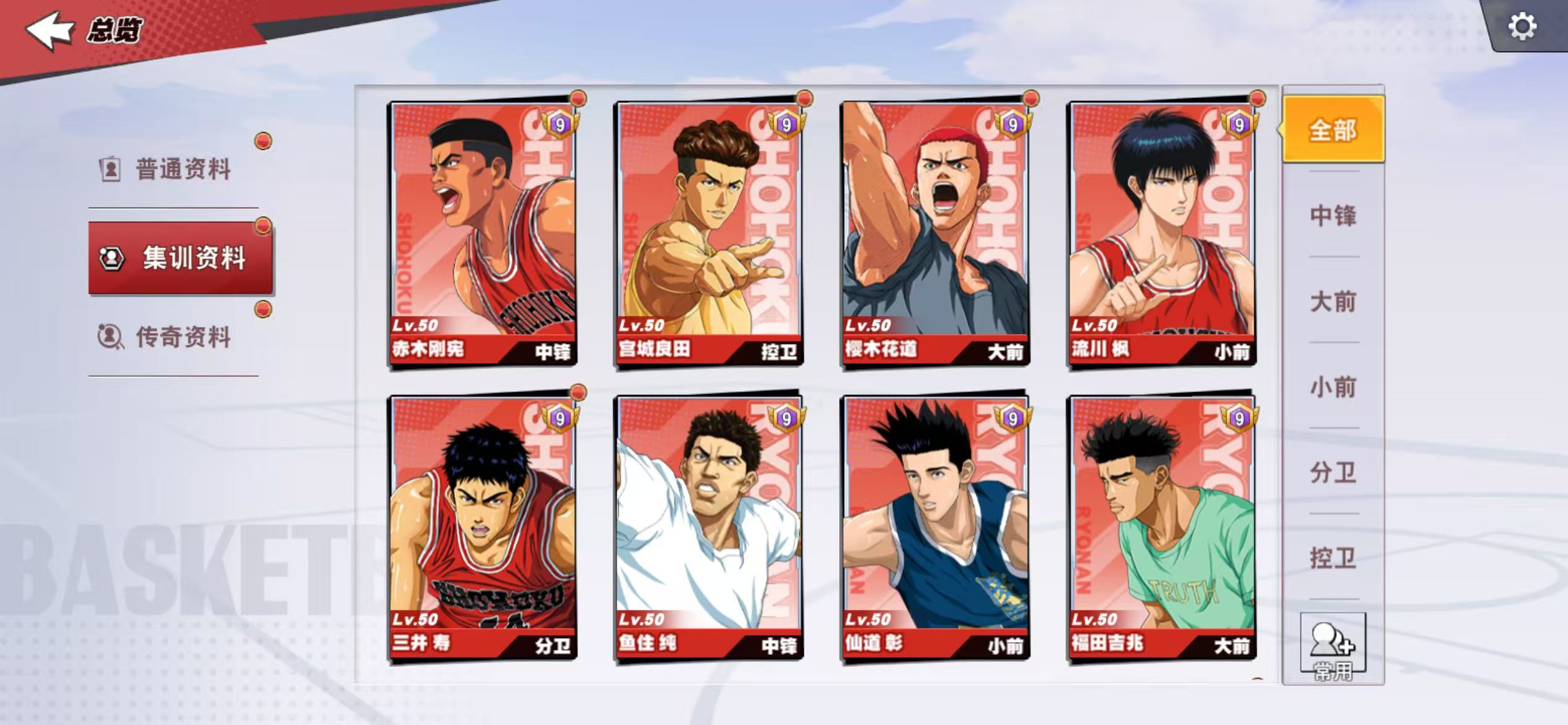 13满级传奇,传奇樱木、传奇赤木、传奇流传9觉,传奇三井7觉,充值6.6万,核心潜能8级,集训、普通全满,