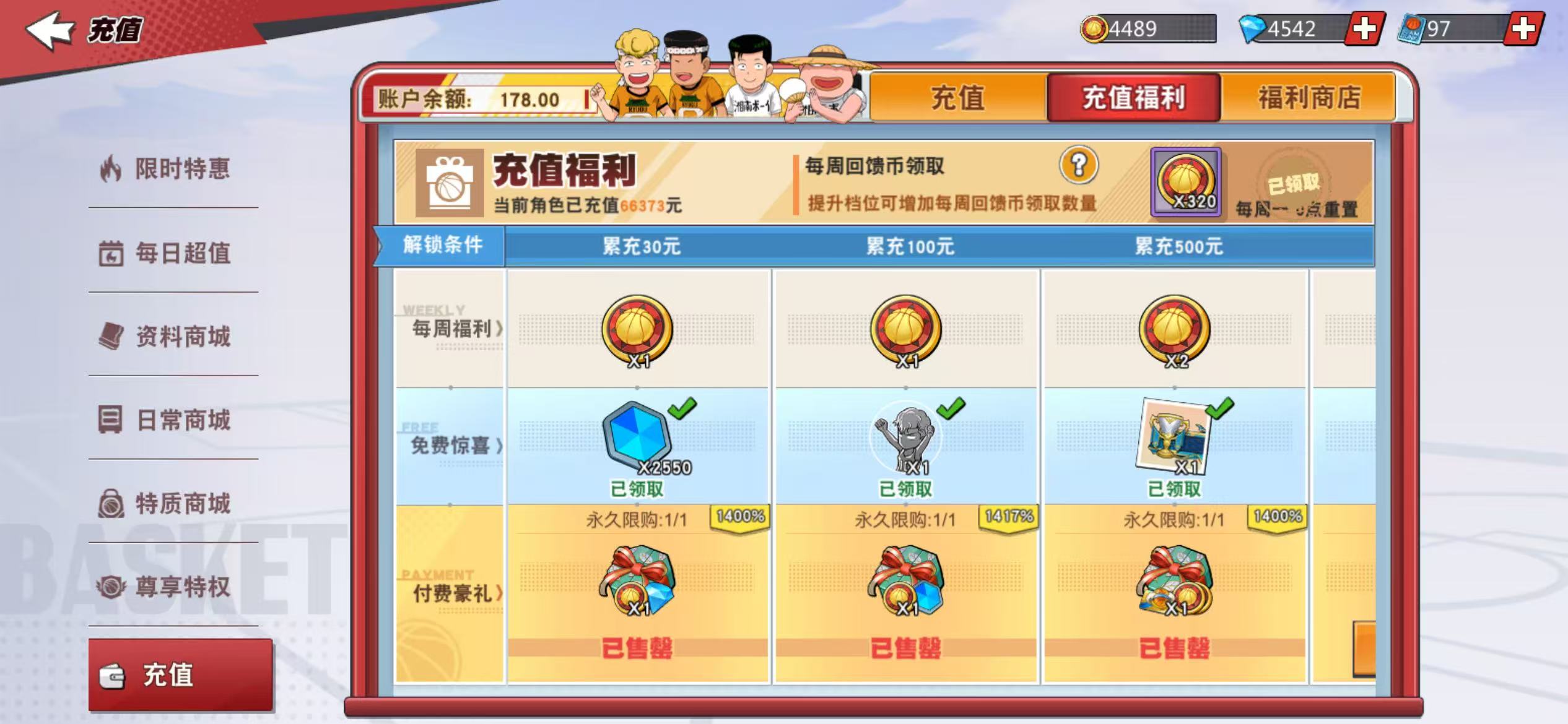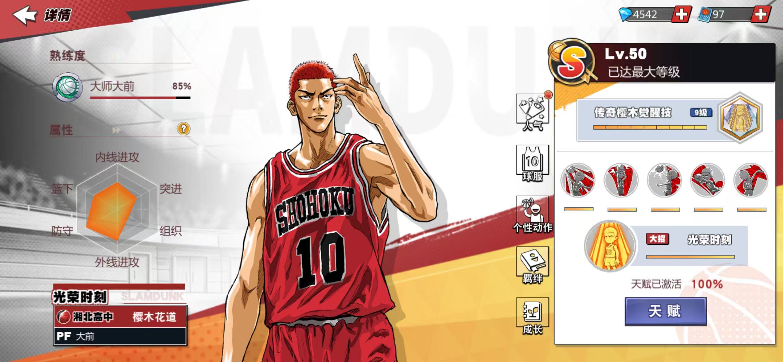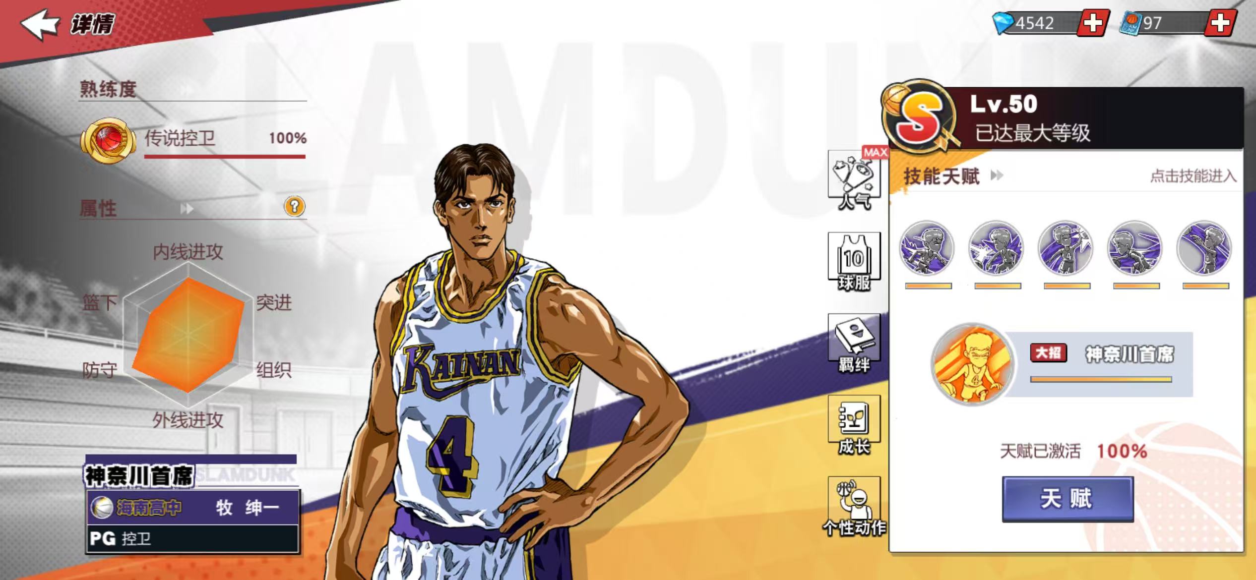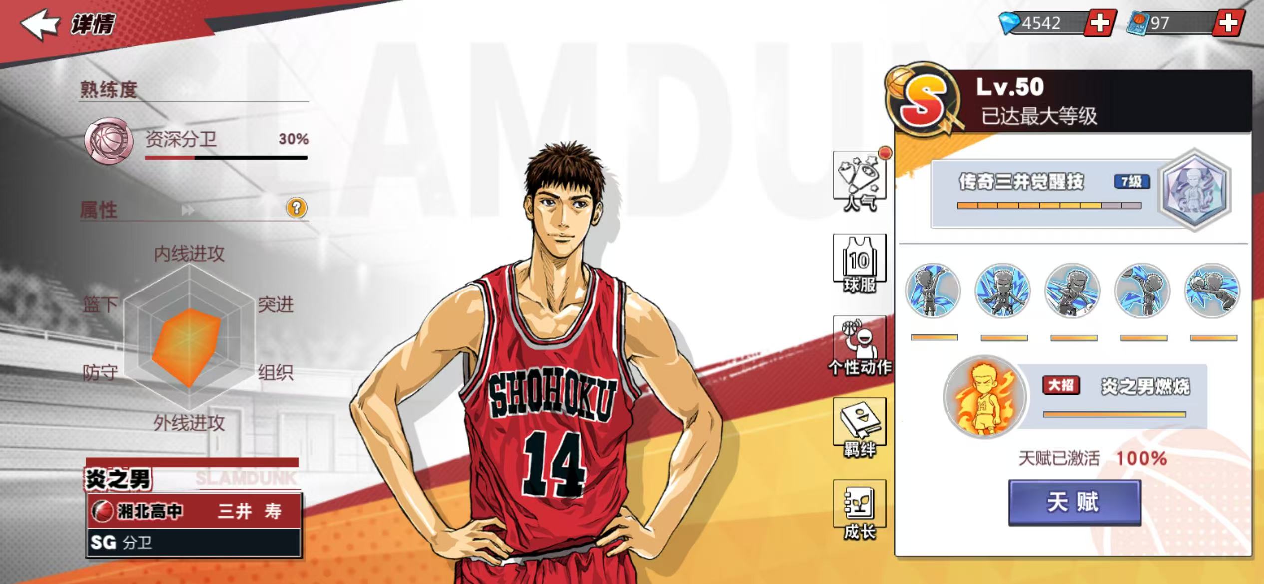 13满级传奇,传奇樱木、传奇赤木、传奇流传9觉,传奇三井7觉,充值6.6万,核心潜能8级,集训、普通全满,
