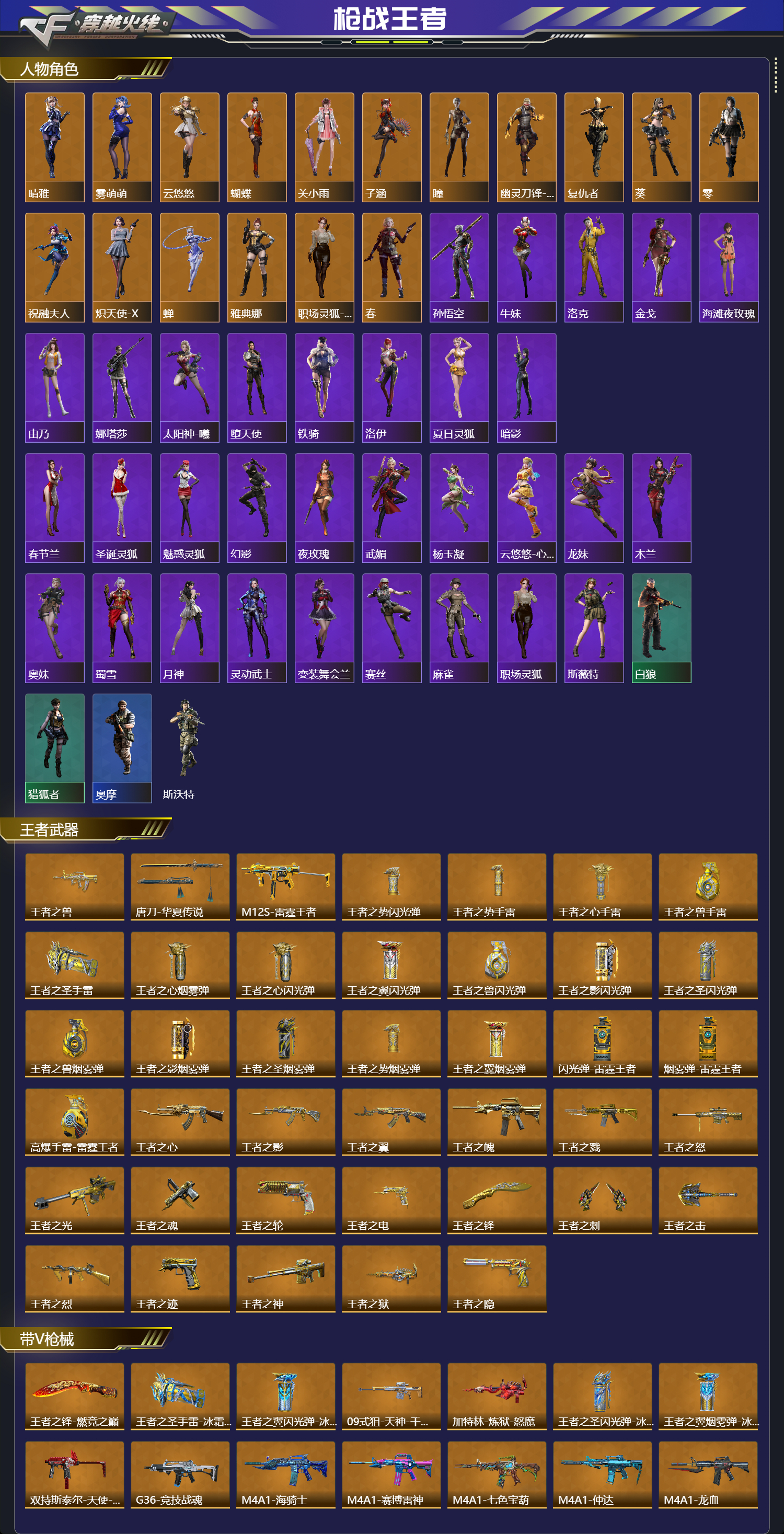【人物角色】晴雅,孙悟空,雾萌萌,牛妹,洛克,云悠悠,金戈,蝴蝶,关小雨,海滩夜玫瑰,子涵,由乃,瞳,潜龙队,娜塔莎,太阳神-曦,幽灵刀锋-觉醒,大老师,堕天使,复仇者,运动宝贝兰,葵,铁骑,洛伊,夏日灵狐,暗影,