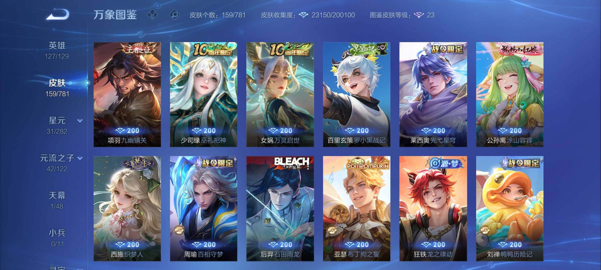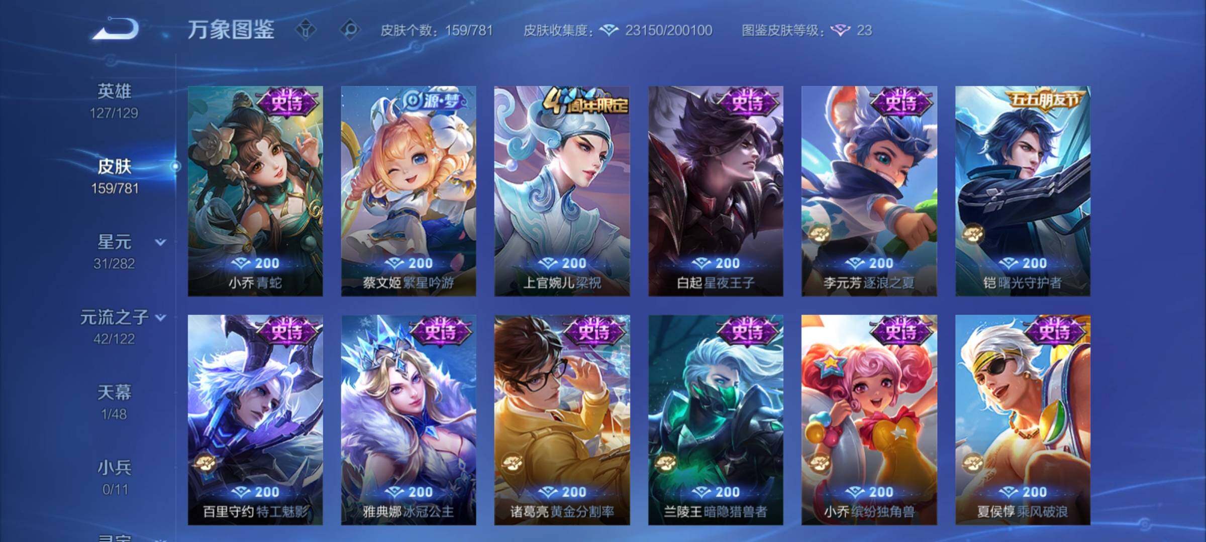 V6-159皮肤-1典藏皮肤-2珍品传说-7传说-40史诗