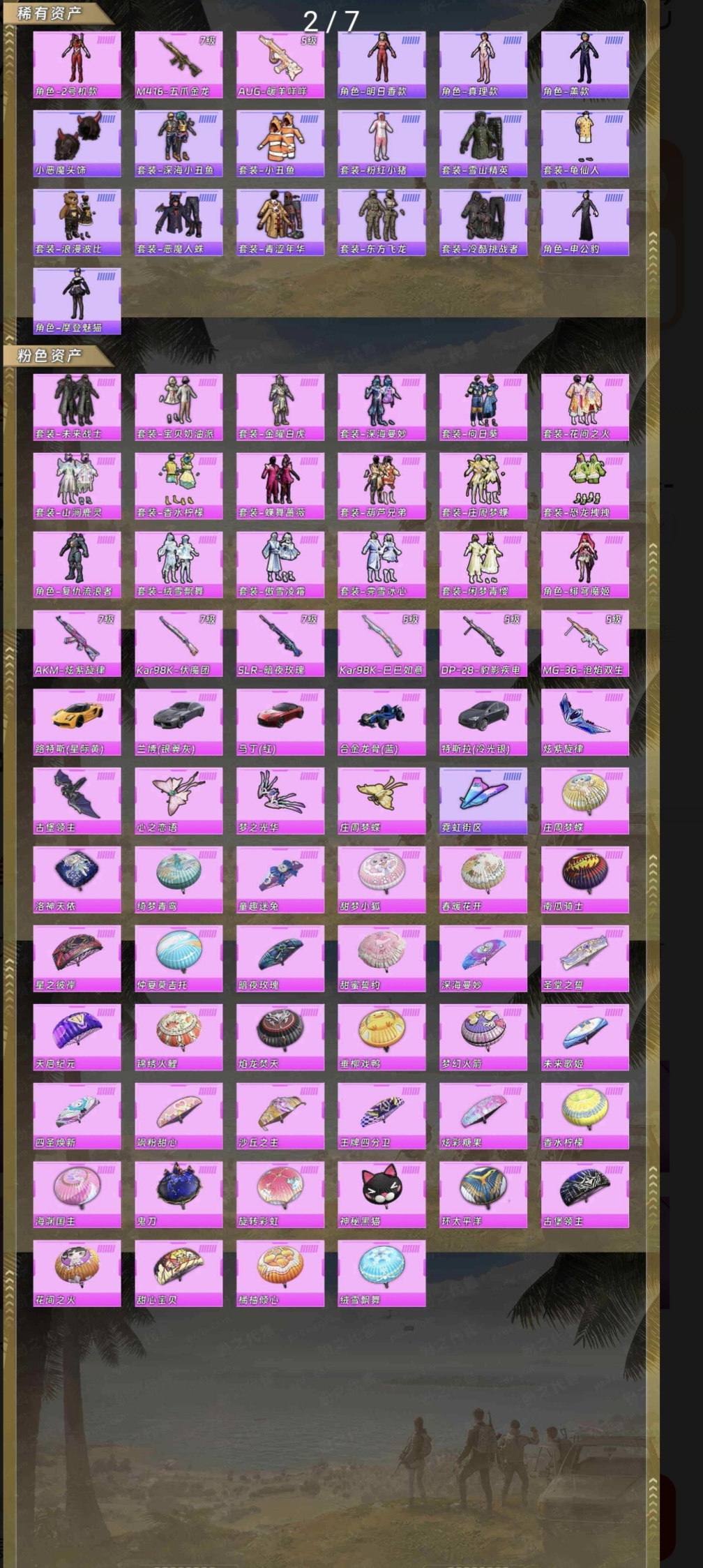 33王牌印记,五载具,满级枪,套装很多自己看截图