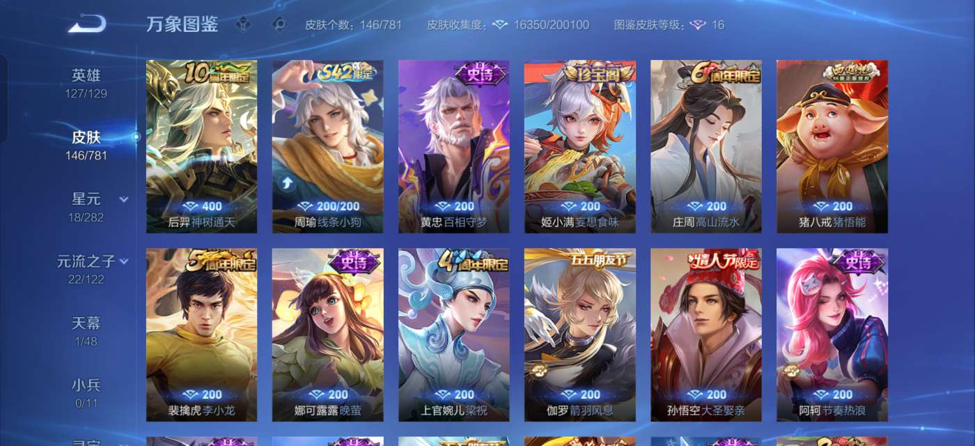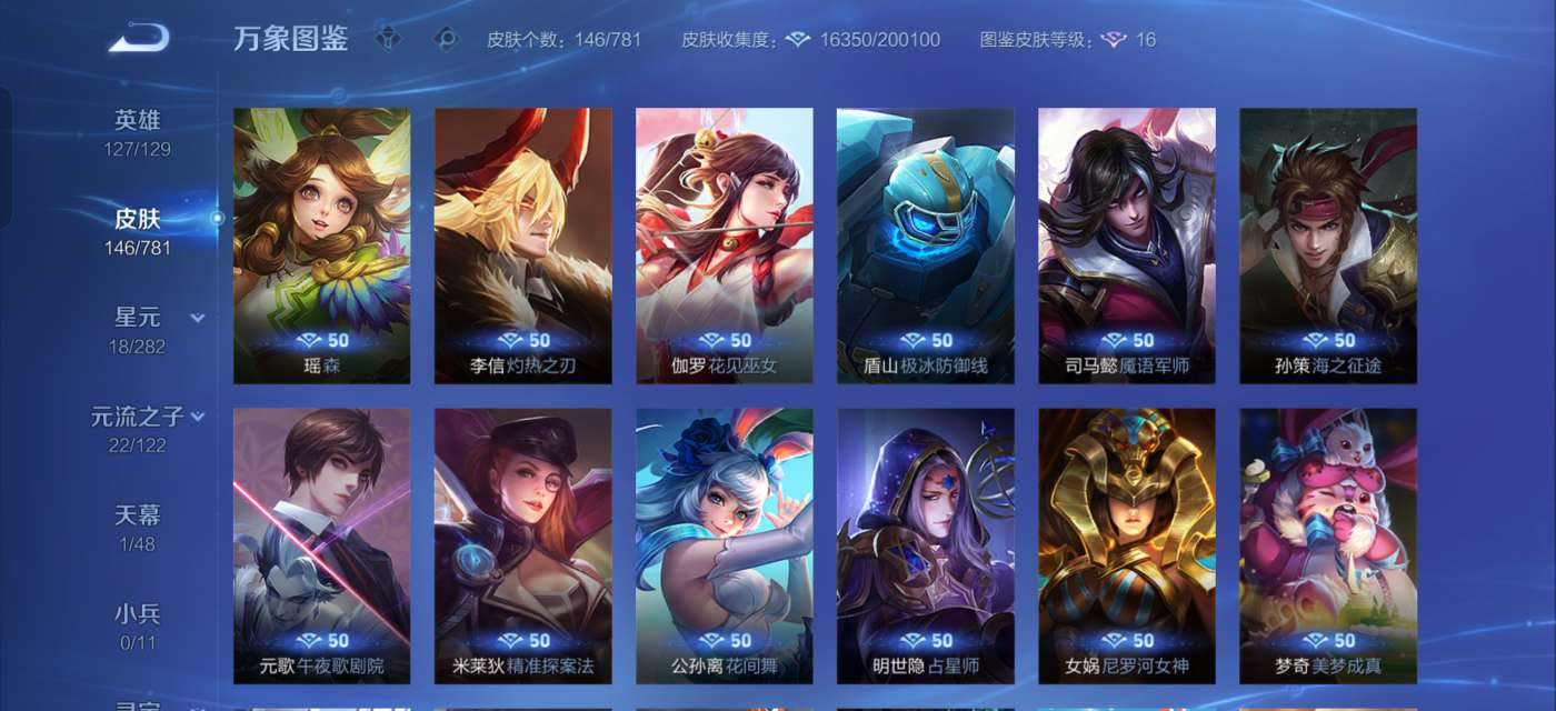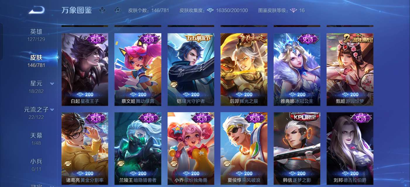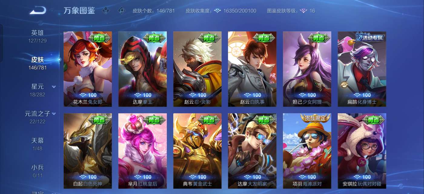 有一颗荣耀水晶未兑换,英雄除了武则天和敖隐,其他的全部拥有,铭文全部已升满级