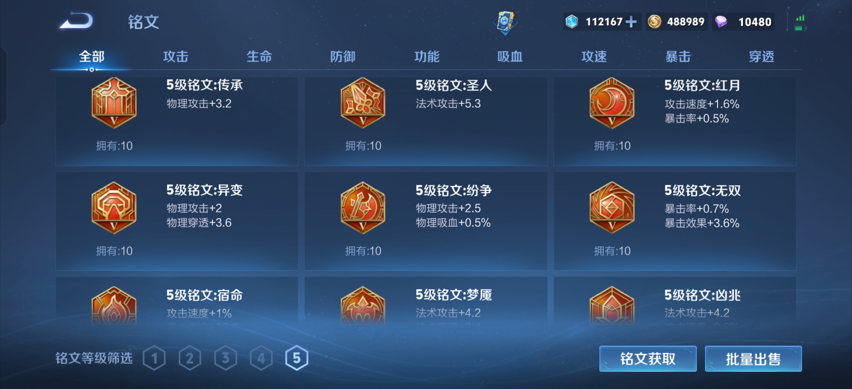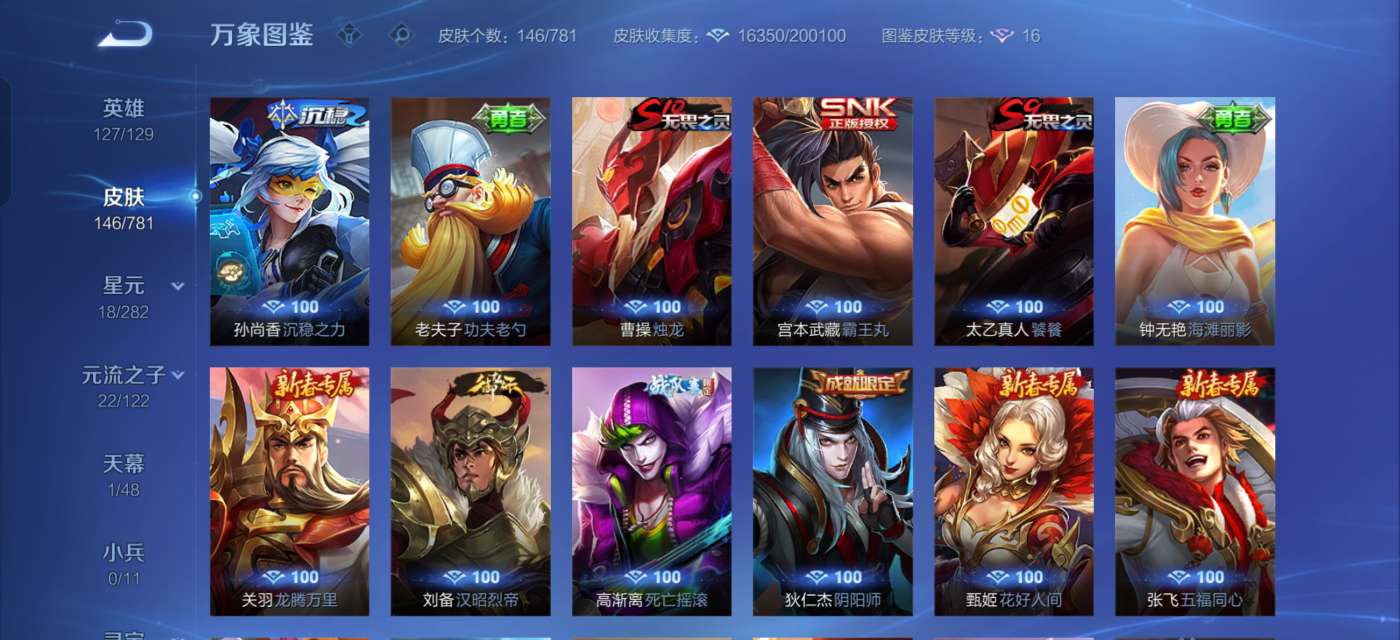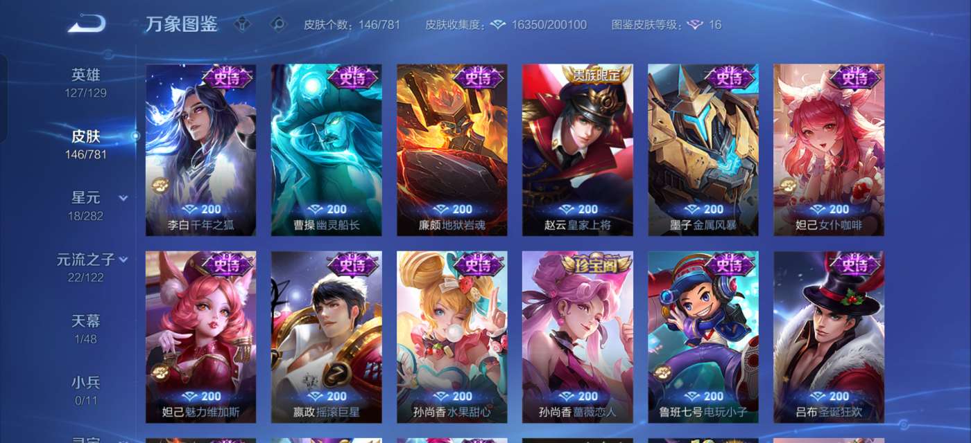 有一颗荣耀水晶未兑换,英雄除了武则天和敖隐,其他的全部拥有,铭文全部已升满级