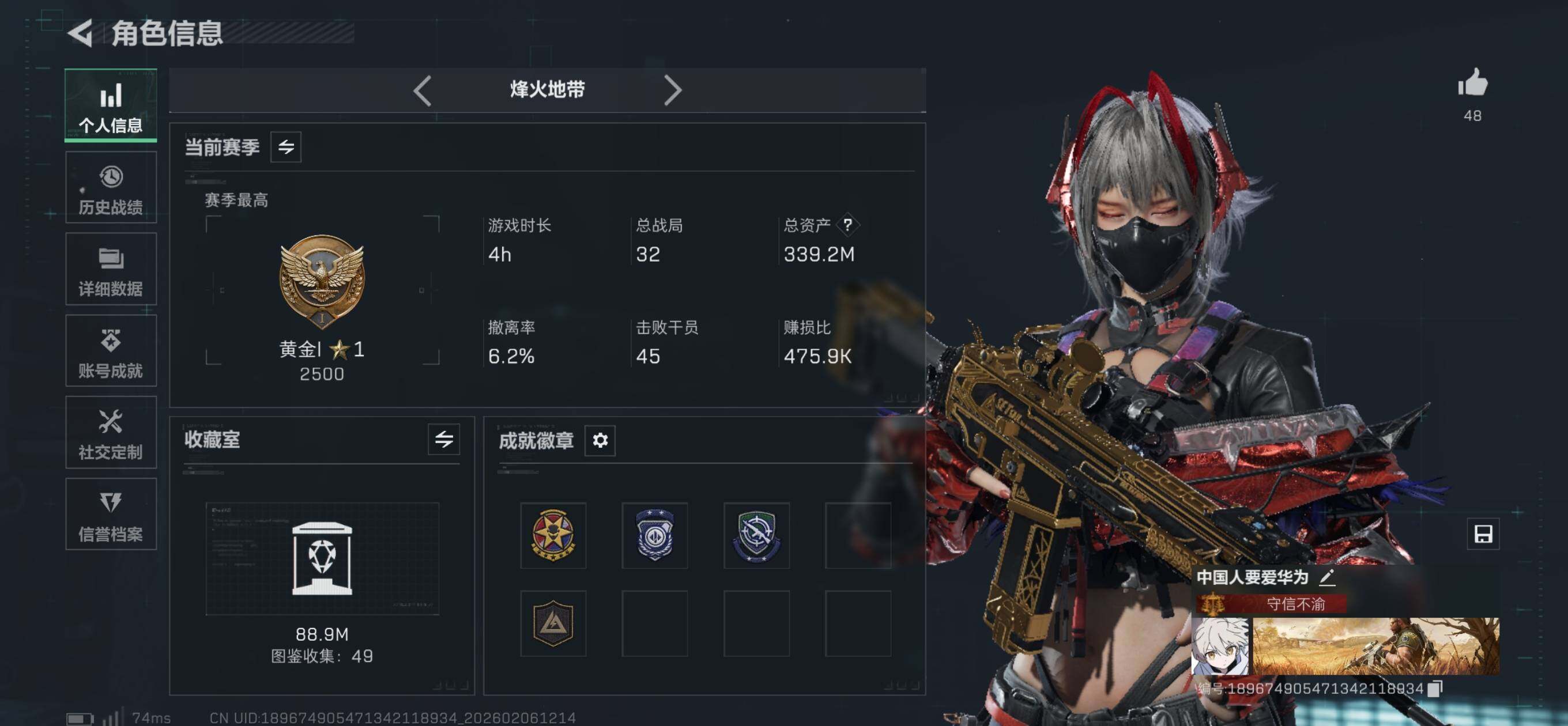 340m总资产-1631k哈伏币-60烽火等级-黄金-39战场等级-上等兵