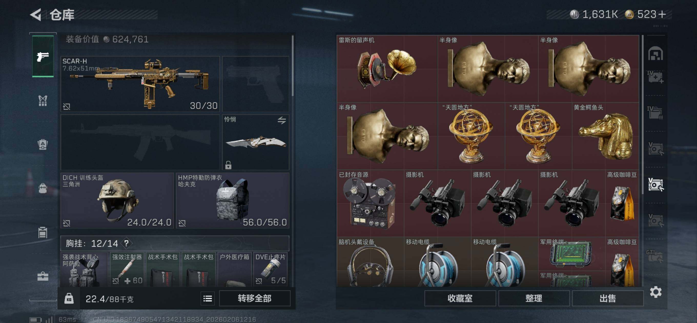 340m总资产-1631k哈伏币-60烽火等级-黄金-39战场等级-上等兵【