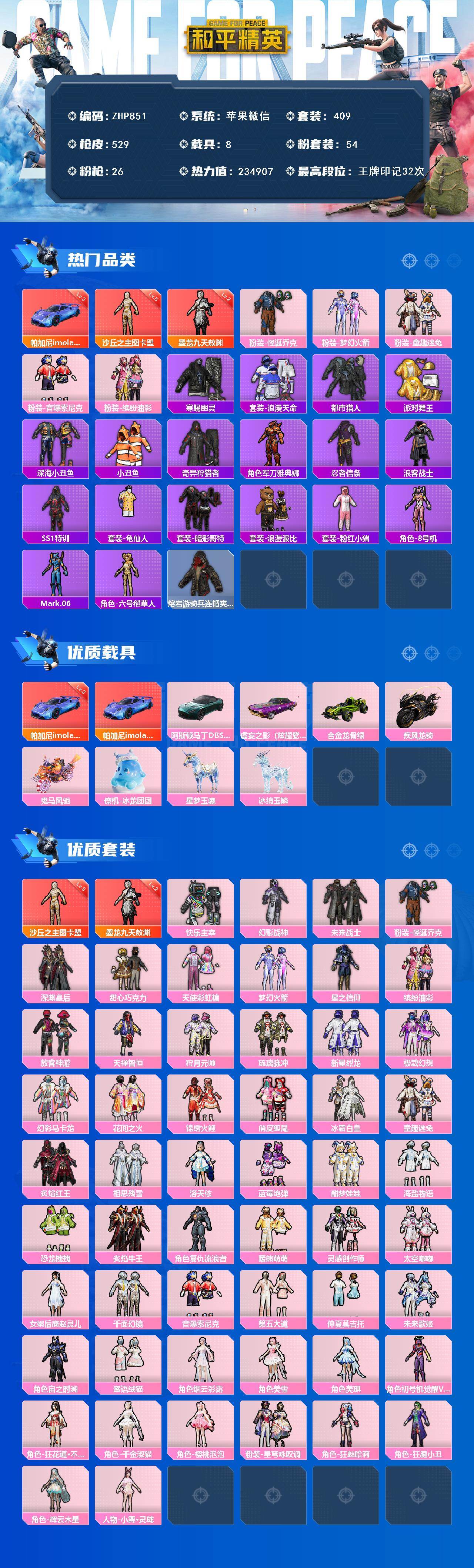 苹果 微信-32印记23w热力2红54粉26特9载!5级图卡盟2级敖渊!3级帕加尼!新2小丑觉醒螳螂小白龙赵灵儿猪妹眼罩小丑寒蝎金鞋都市-19粉色飞行器-409套装-529枪皮
