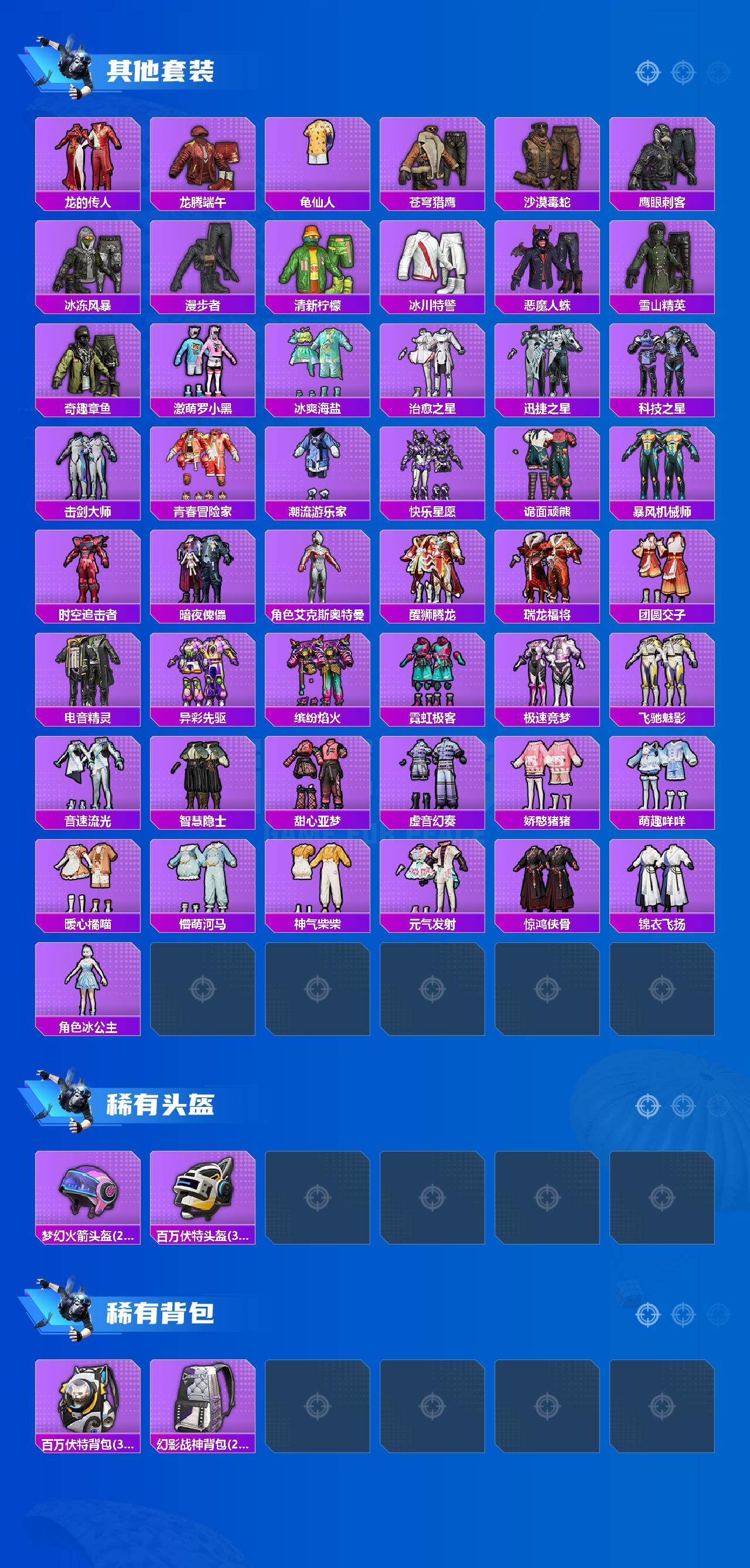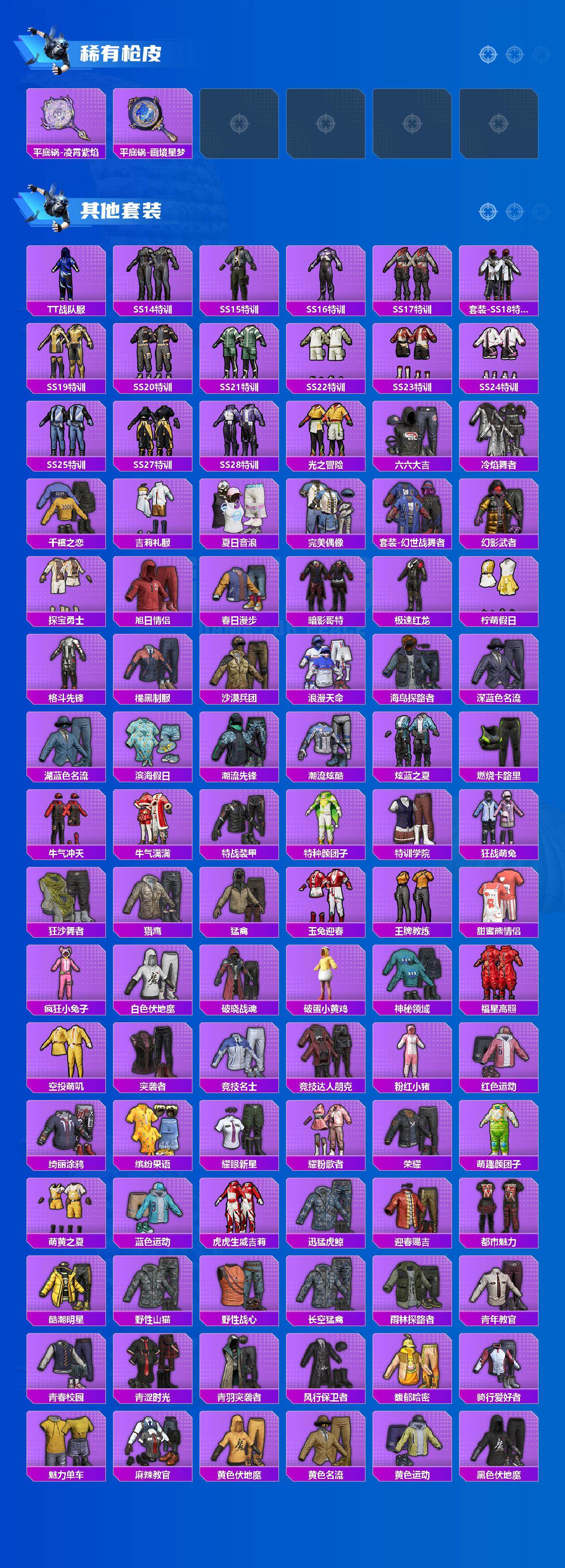 【粉色套装】:粉装-深海曼妙,粉装-甜心娃娃,粉装-精灵娃娃,粉装-碧影闪光,粉装-炙焰牛王,角色-复仇流浪者,角色-异瞳寒姬