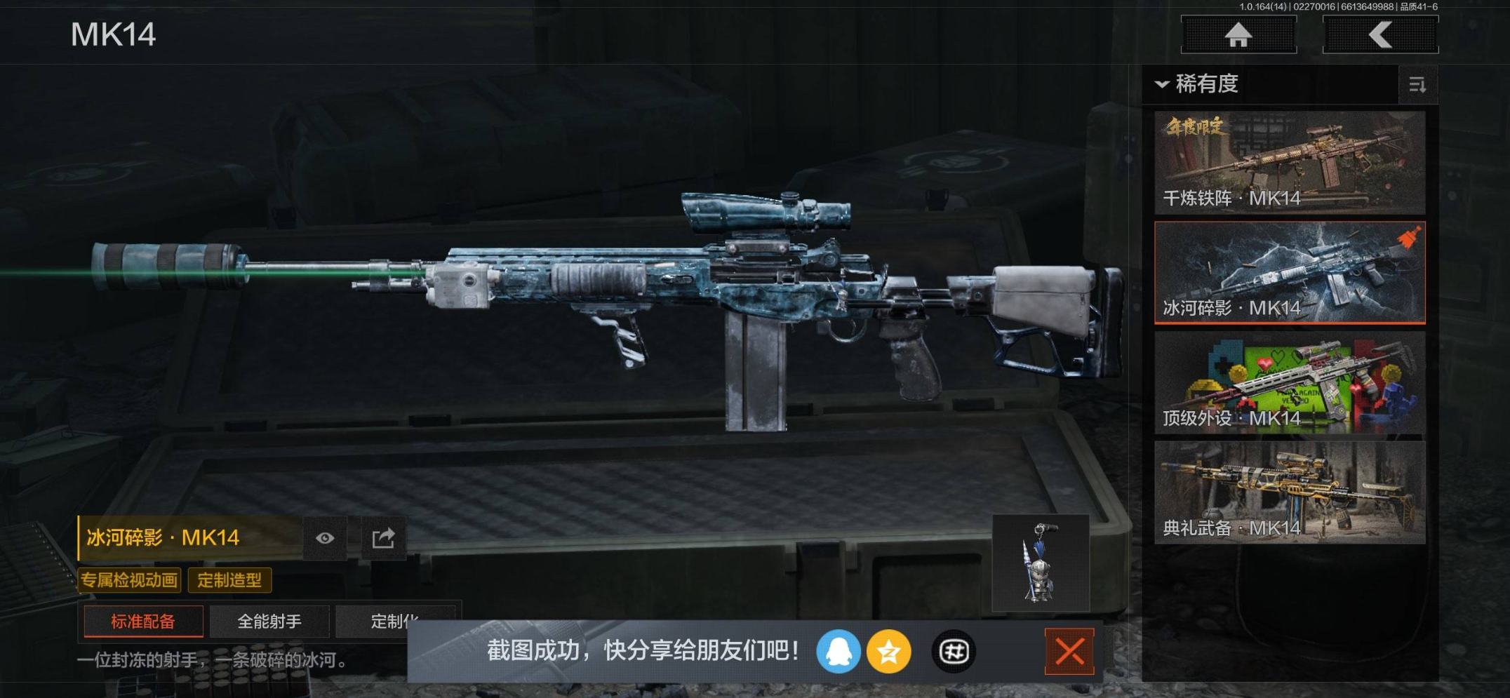 苹果qq-可二次实名-冰妹加刀皮号-店家首推账号-嘎嘎香-刀皮:瑞兔折刀-急袭弯刀-下弦月-空腔战术-赤火炉心-时装:冥王-白蔷薇-冥河-深潜行者-枪皮:冰河碎影MK14-千锻铁阵MK14-镀火熔金H416-百锻铁骑AEK-战术大师AEK-战术大师AN94-旧王圣谕QBZ191-黑金弹头P90-旧王圣谕VSS-近卫荣誉RPK16-【勾选了部分装备-详情看图-】平台安心购店铺/10分钟左右发货完