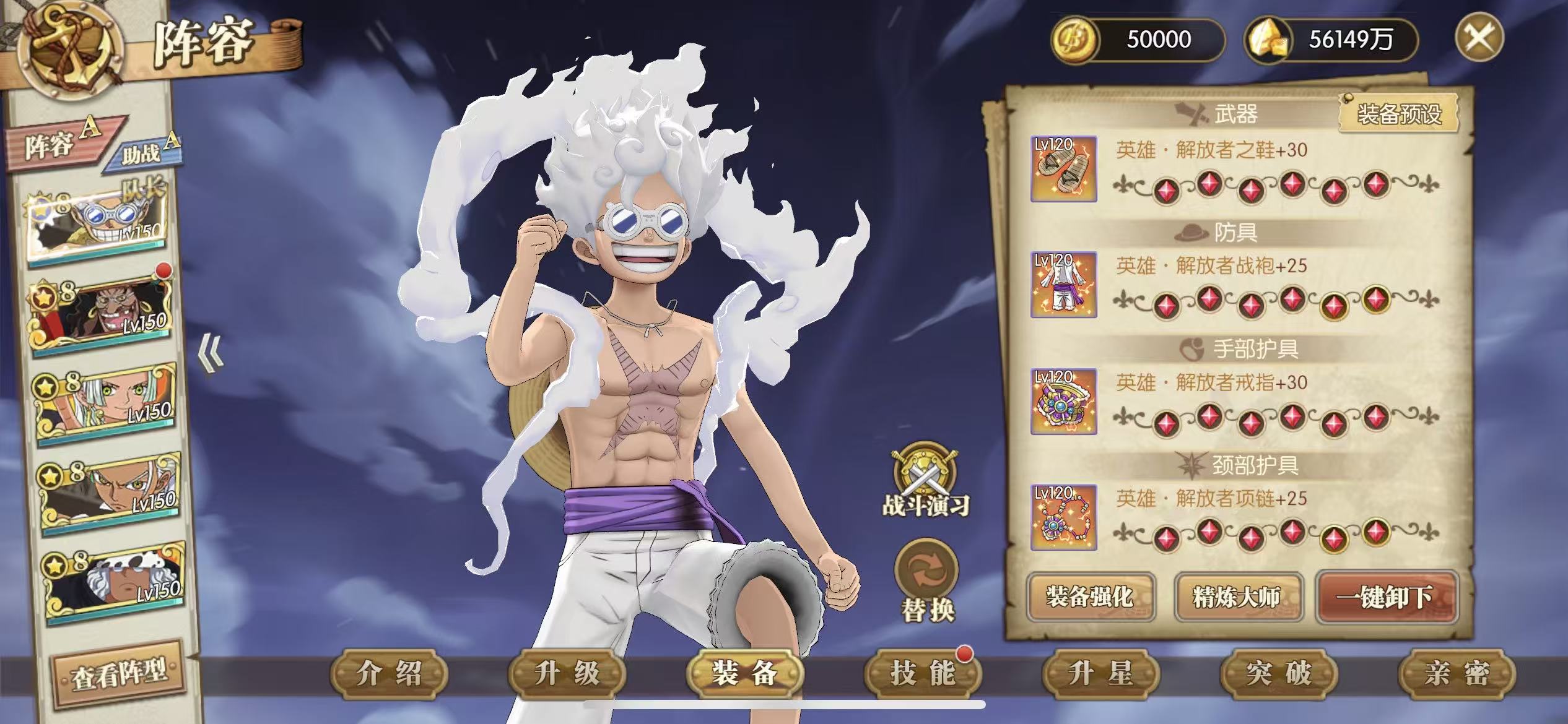 【航海王燃烧意志-六级阵全皮1390尼卡-全员千速-3200w战力巨号-ios空岛260】(带20速