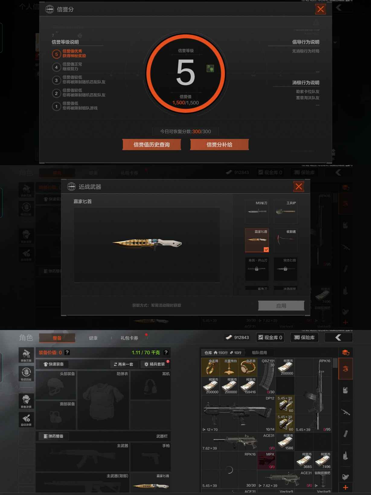 【仓库价值4.9M 赢家匕首 收割者 7金枪 2金投掷物】安卓Q-等级30