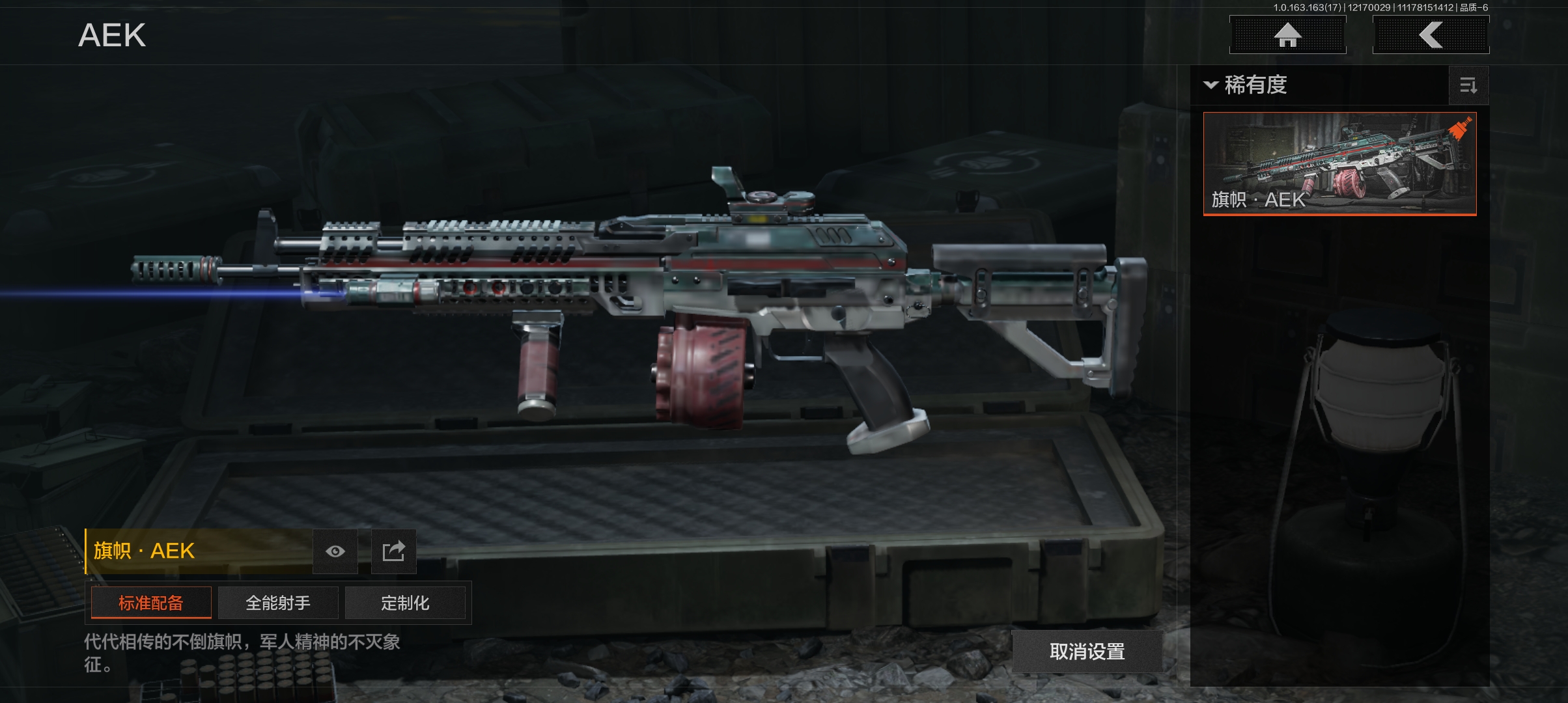 DSTW1770【29M 2刀皮 4金枪 苍穹利爪 野战折刀 】安卓Q-等级30-仓库价值29.4m-科恩币22498k【枪皮】 告丧夜曲·AR57 旗帜·AEK 浮鳞影青·QBZ192 旧王圣谕·VSS 【刀皮】 苍穹利爪 野战折刀