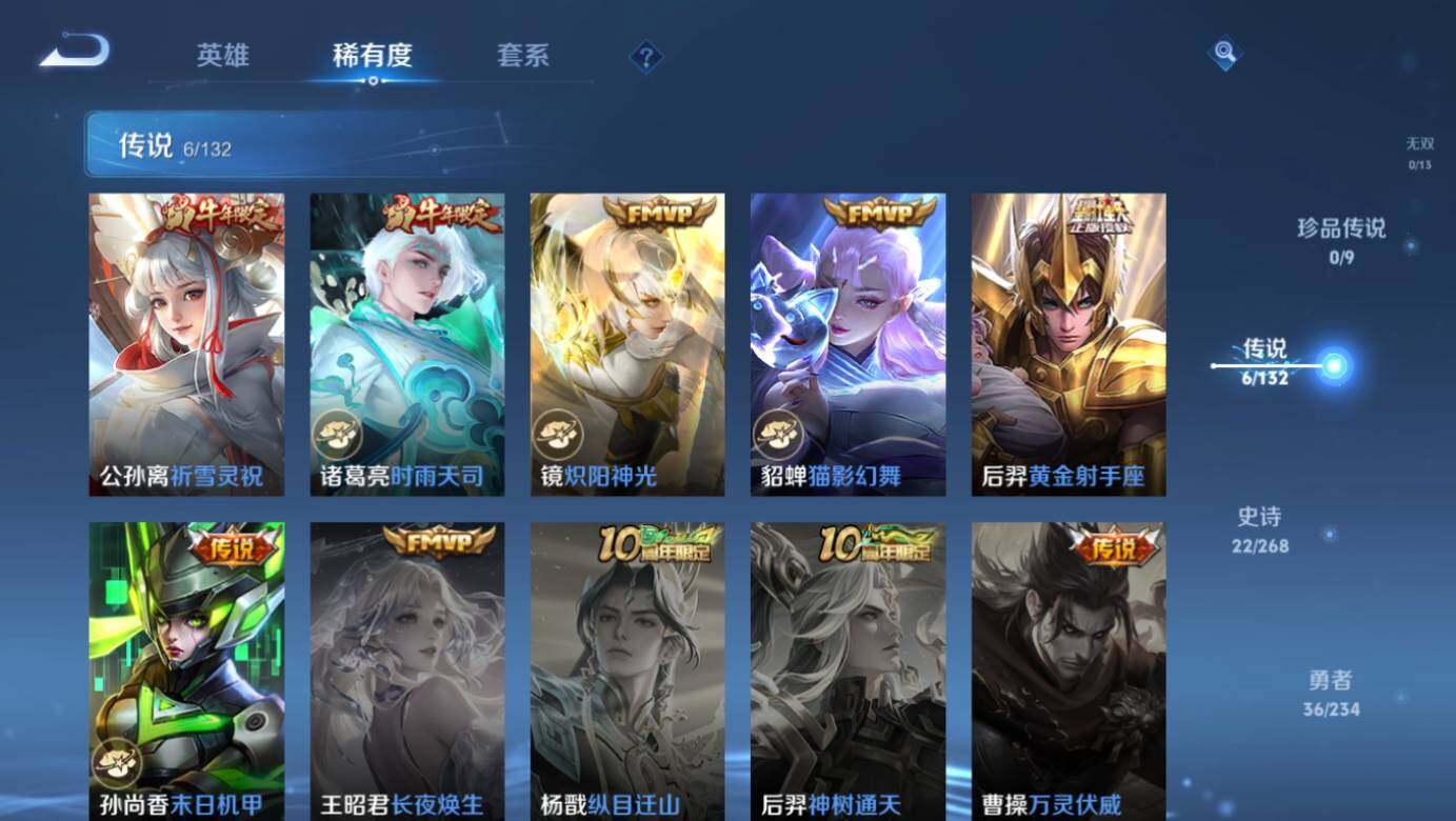 【传说皮肤】:公孙离祈雪灵祝,诸葛亮时雨天司,镜炽阳神光,貂蝉猫影幻舞,后羿黄金射手座,孙尚香末日机甲