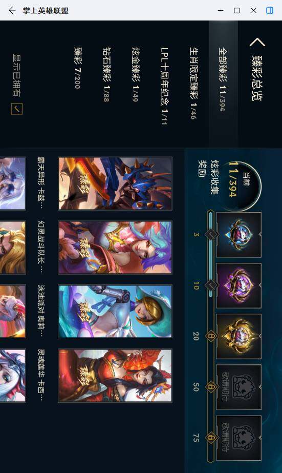 未定级段位-172英雄-565皮肤-304炫彩-2终极-22神话-80限定-56传说-137史诗