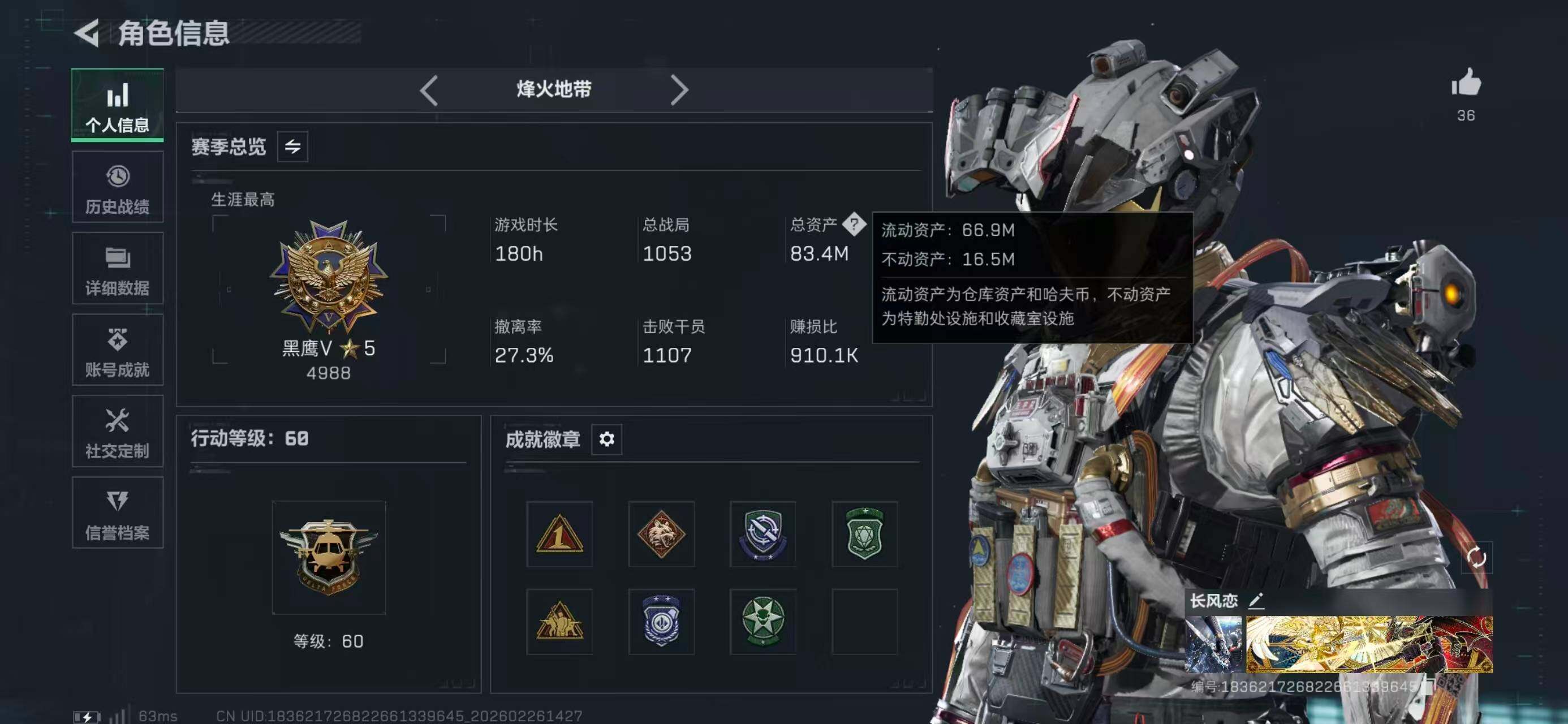 83.4m/信条/暗星/凌霄戍卫/蚀金玫瑰/水墨云图/优品a品质val/不破誓约/金牌射手/电锯惊魂/赛季6格已开/仓库多六套