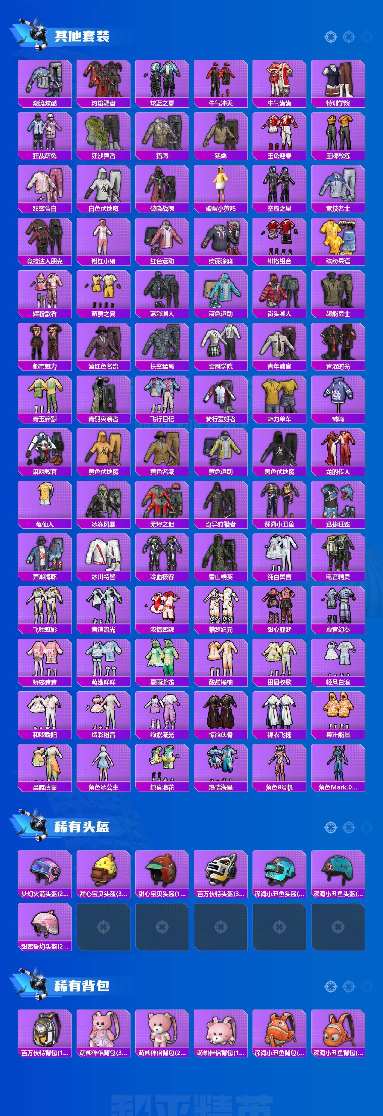 【热门品类】:套装-浪漫天命,套装-深海小丑鱼,套装-小丑鱼,套装-奇异狩猎者,套装-龟仙人,套装-暗影哥特,套装-粉红小猪,角色-8号机,角色-Mark.06