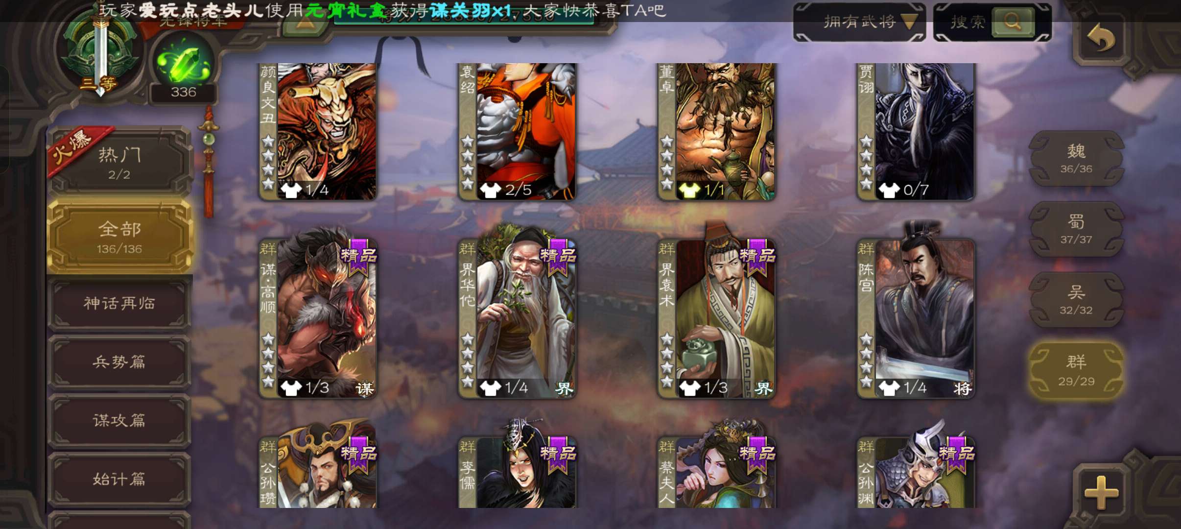 5史诗先锋,4.7万豆,回廊动白马神吕布谯周花鬘董允,神周瑜谋高顺张翼张布界朱治136将