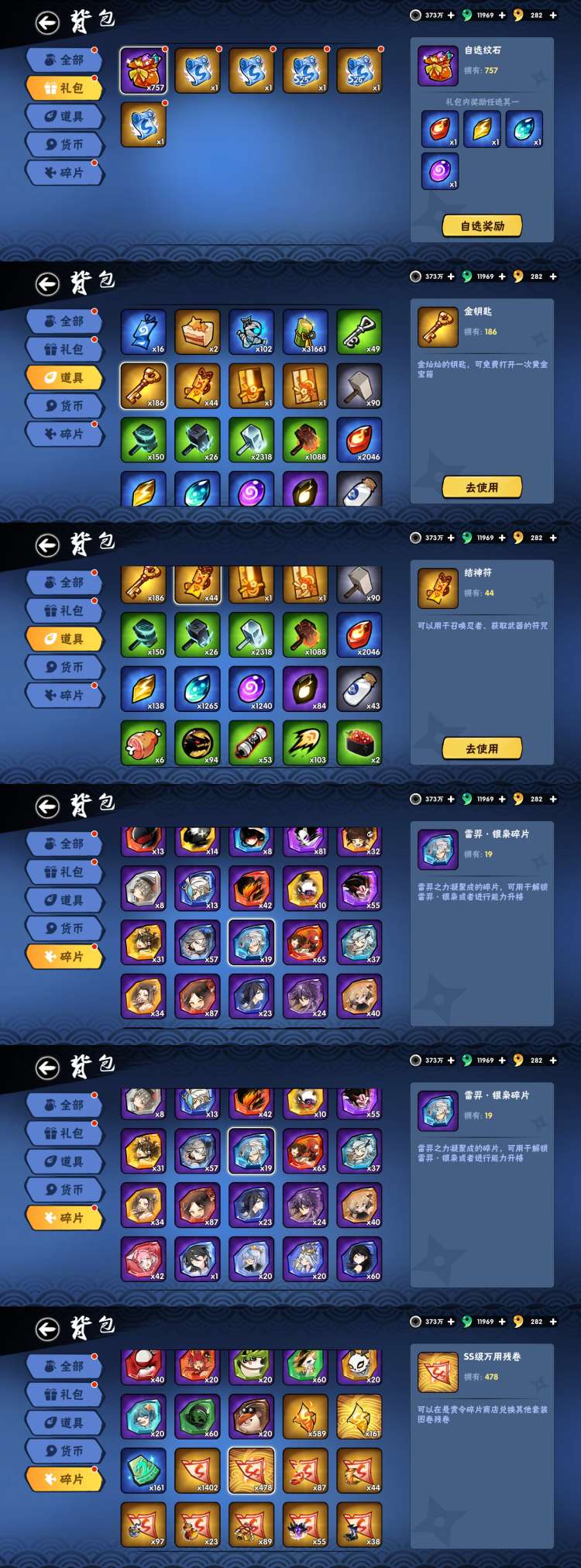 OPPO三区6命3+3隼白,5命2+0新雷忍(下个月可2+2,大量资源可以自己抽升6命),53天神龙